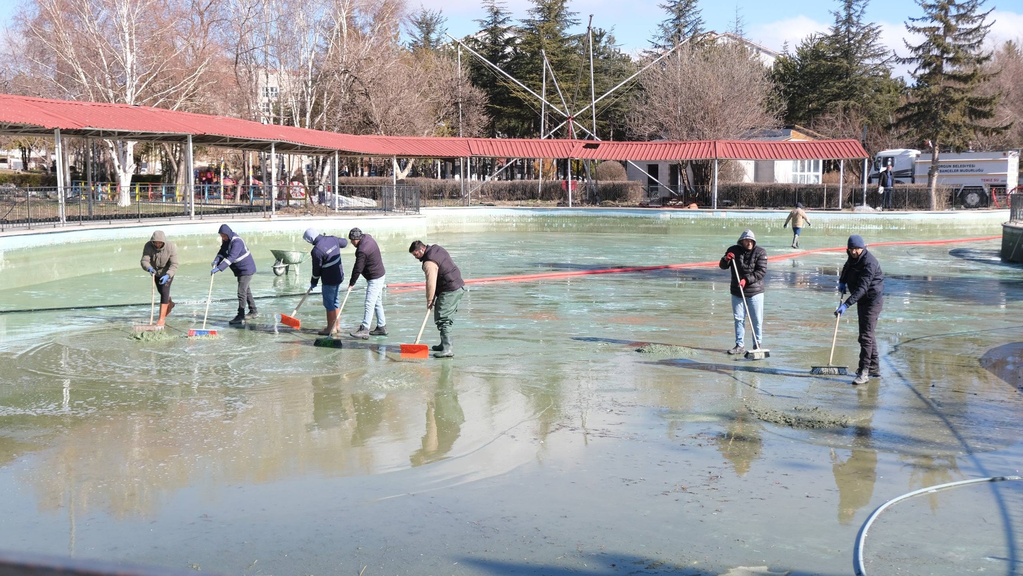 Belediye ekipleri tarafından yürütülen çalışmalar kapsamında Dutluk Parkı’nda havuz yıkama ve otopark düzenleme çalışmaları gerçekleştiriliyor. Parkın daha temiz, düzenli ve kullanışlı hale getirilmesi için ekiplerin yoğun mesai harcadığı ifade edildi.