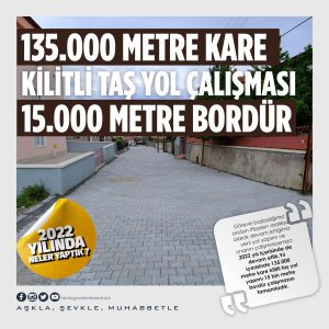 “Göreve başladığımız andan itibaren aralıksız olarak devam ettiğimiz yeni yol yapımı ve onarım çalışmalarımıza 2022 yılı içerisinde de devam ettik.Yıl içerisinde 135.000 metre kare kilitli taş yol yapımı 15 bin metre bordür çalışmasını tamamladık.” Haber Merkezi