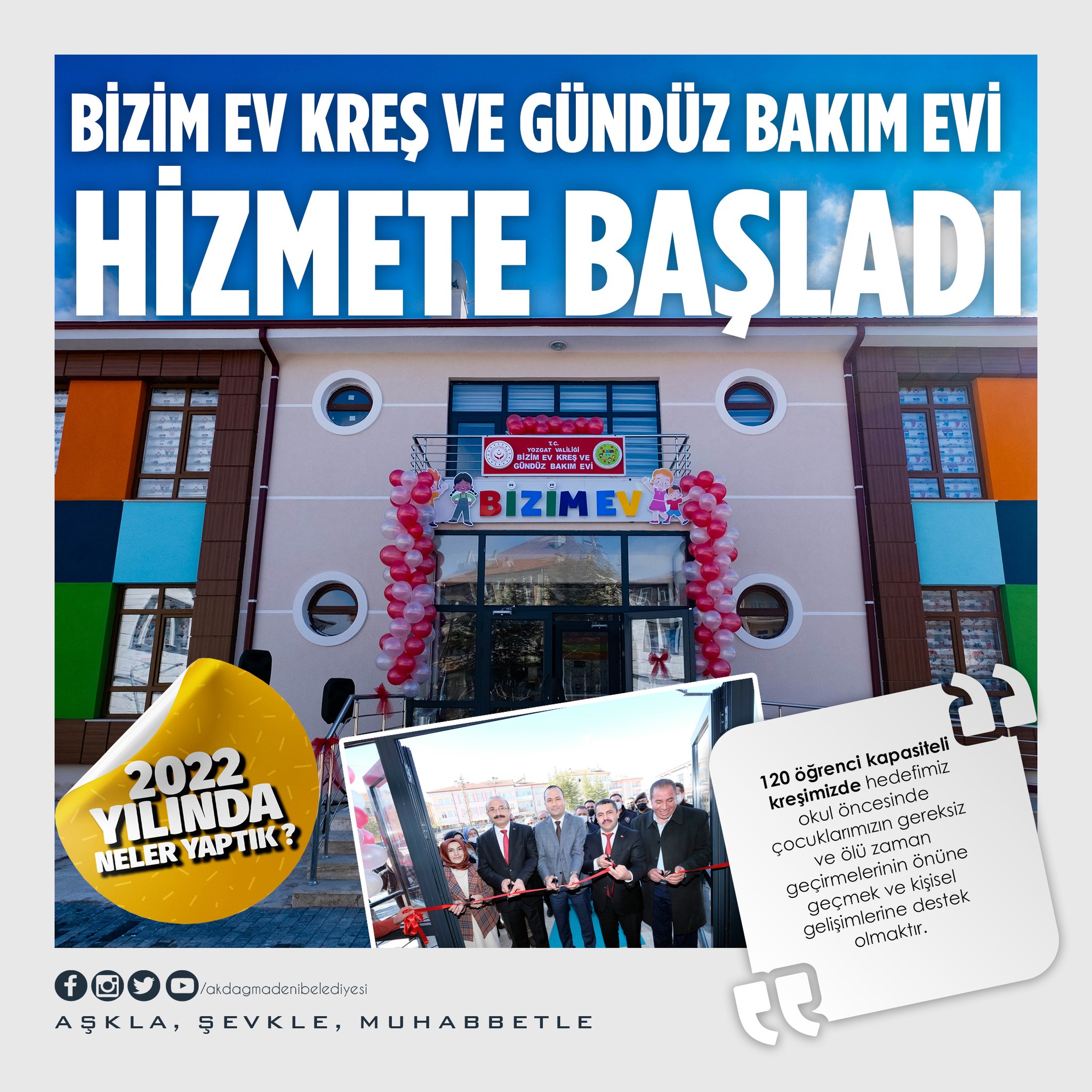 “İlçemizde çocuklarımızın aktivite alanlarını genişletmek ve eğlenmelerini sağlamak, verimli vakit geçirerek hem fiziksel hem de psikolojik gelişmelerine yardımcı olmak amacıyla ”Bizim Ev Kreş ve Gündüz Bakım Evi” altında oluşturduğumuz ”Kapalı Çocuk Oyun Salonu’nu açtık.”