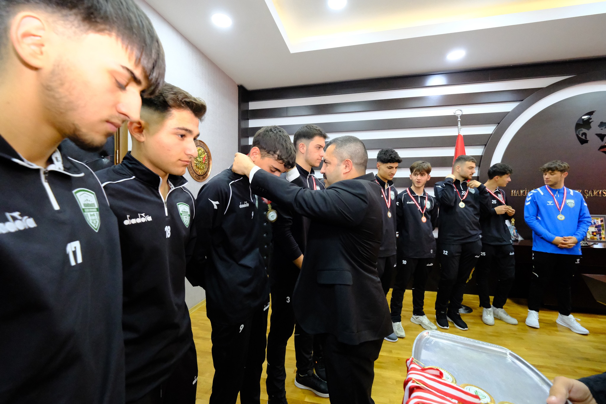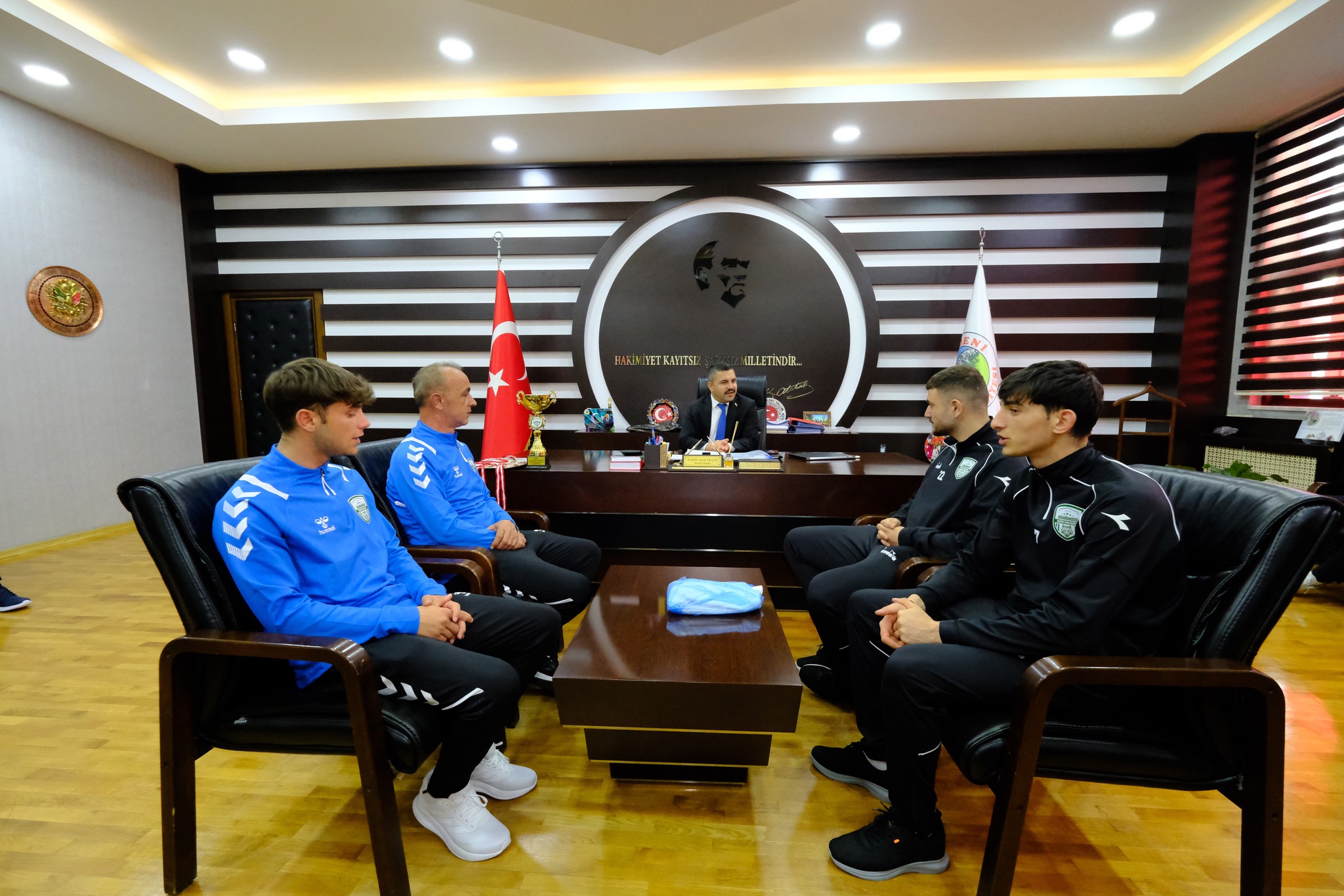 Yozgat U18 Ligi’nde şampiyonluğa ulaşarak önemli bir başarıya imza atan Akdağmadeni Belediyespor U18 Futbol Takımı, Belediye Başkanı Dr. Nezih Yalçın’ı makamında ziyaret etti. Genç futbolcular, şampiyonluk kupasını Başkan Yalçın’a takdim etti.