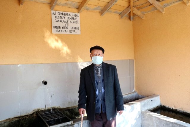 Köyüne yaptırdığı babasının mezarına her gün dua etmek için gittiğini ifade eden Ali Demirbaş, “Ben babamı görmeden dünyaya geldim şimdi de onun yasını tutuyorum, onun için hayır yapıyorum. Babam 15 yaşında asker oldu, mekanı cennet olsun. Babam Çanakkale Savaşı’nda şehit oldu. Hastanede şehit olmuş. Cephede olmamış, yaralanmış hastaneye getirmişler ve orada şehit olmuş. Babam orada vefat ediyor ve ben köyde dünyaya geliyorum. Ben de Çanakkale’nin Gelibolu ilçesinde askerliğimi 4 yıl boyunca yaptım.