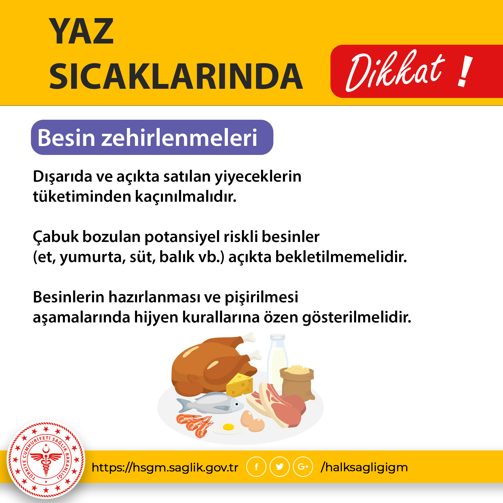 Yozgat İl Sağlık Müdürlüğü tarafından aşırı sıcaklarda besin zehirlenmelerine dikkat edilmesi konusunda uyarılarda bulunuldu.