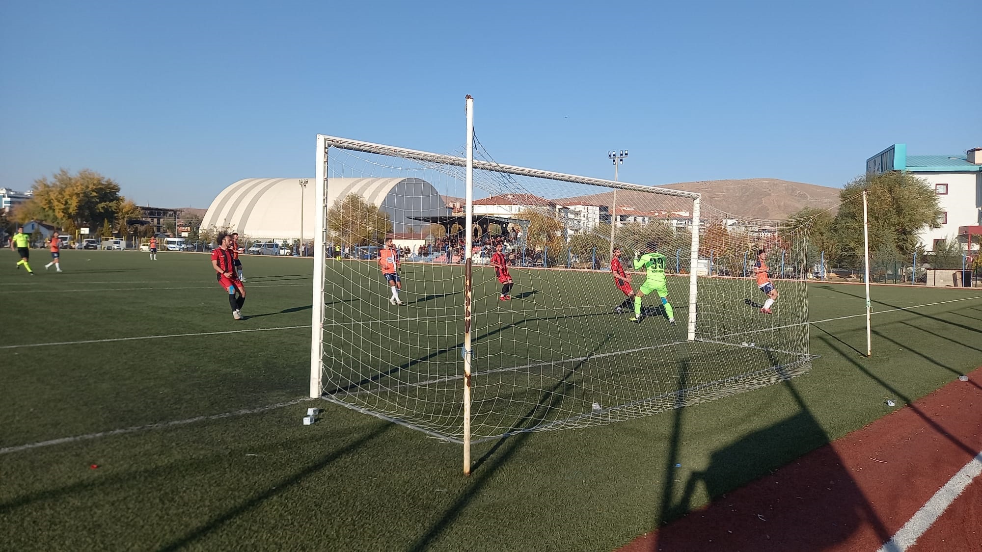 63 dakika sol taraftan Talasgücü korner kullandı. Bozok kalecisi parmaklarının ucu ile topu kornere çevrildi.