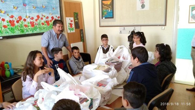 Yozgat Ticaret Borsası Yönetim Kurulu Başkanı Mehmet Erkekli ihtiyaç sahibi ilkokul öğrencilerine verilmek üzere alınan kabanları, daha önceden belirlenen okulların okul müdürlerine teslim ederek öğrencilere ulaşmasını sağladı.