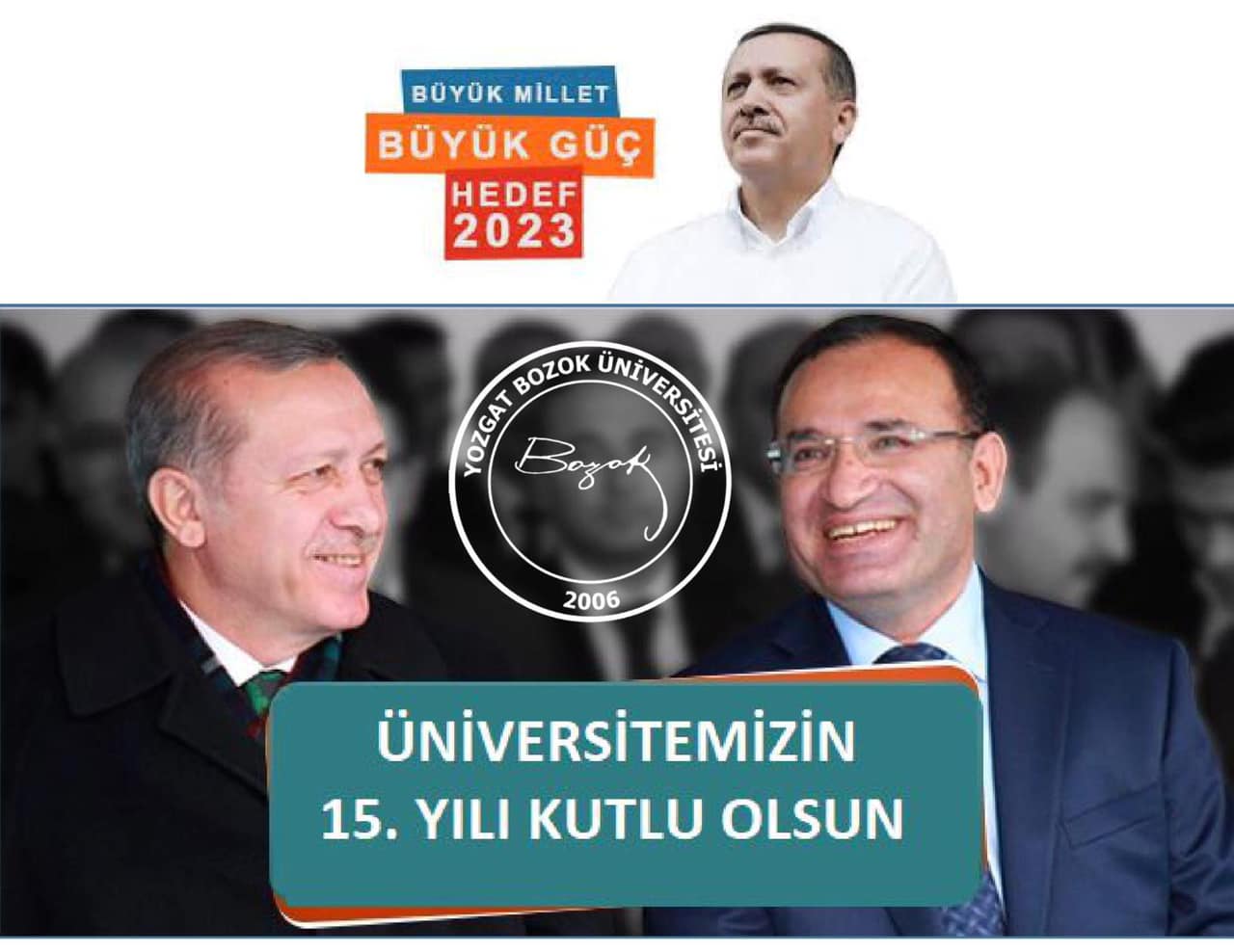 Bozok Üniversitesinin kuruluşunun 15. Yılı kutlu olsun. Yozgat’a diktiğimiz Bozok üniversitesi fidanı, bugün büyük bir çınar oldu. Nasıl mı?  Devamı sonraki paylaşımlarda.”diyerek sözlerini tamamladı.