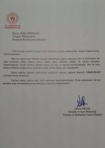 Stadyum yıkılacaktır. Yeni stadyum yapılacaktır. Stadyumdan projesi, başından beri yeni stadyum projesidir. Projede bir değişiklik yoktur. Yeni stadyumun yapılacağı yer, mevcut stadyumun yeridir. Yeni stadyumun yeri belirlenirken, Mevcut stadyumun merkezî konumu ve ulaşım kolaylığı yanında; Yozgatspor’umuzun, taraftarlarımızın, sporseverlerimizin, esnafımızın ve şehrimiz ekonomisinin menfaatleri öncelikli olarak dikkate alınmıştır. Yozgat ziyareti sırasında yeni stadyum sözünü veren ve bunu kamuoyuna deklare eden Gençlik ve Spor Bakanımız Sayın Mehmet Muharrem Kasapoğlu yeni stadyum konusunu bizzat takip etmektedir. Ak Parti Yozgat Milletvekilleri olarak yeni stadyum yapım sürecini yakınen takip ediyoruz. Yozgat’ımıza yeni stadyum yapma kararları dolayısıyla Cumhurbaşkanımız Sayın Recep Tayyip Erdoğan ile gençlik ve spor bakanımız sayın Mehmet Muharrem Kasapoğlu’na hemşerilerim ve şahsım adına şükranlarımı sunuyorum. Yeni stadyum şehrimize hayırlı olsun. Her şey Yozgat için.”