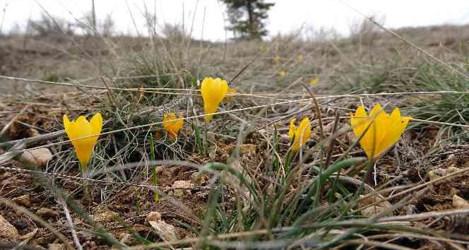 Baharın müjdecisi olarak bilinen ve önceki yılarda Şubat ayında çiçek açan çiğdemler yoğun kar yağışı dolayısıyla bu yıl gecikmeli olarak bozkırlarda çiçek açtı.