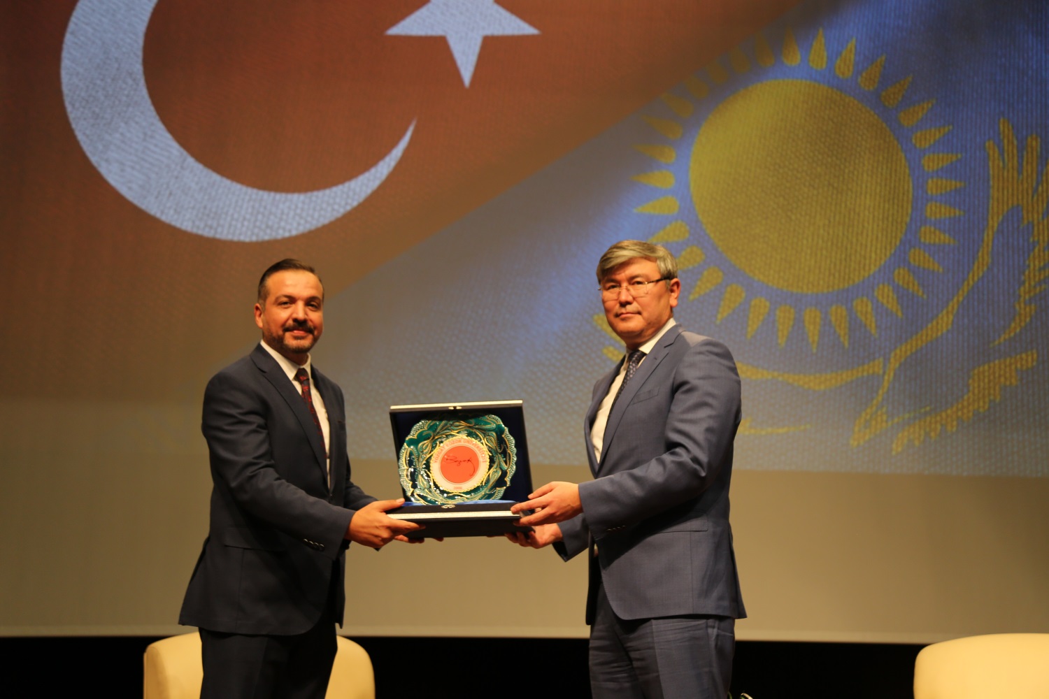 Program sonunda İktisadi ve İdari Bilimler Fakültesi Dekanı Prof. Dr. Kürşad Zorlu tarafından Kazakistan Cumhuriyeti Ankara Büyükelçisi Abzal Saparbekuly’e plaket takdim edildi.