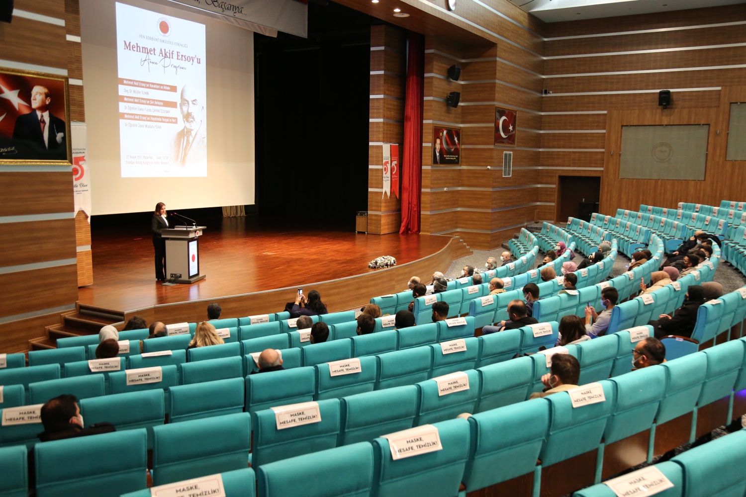 Üniversite Erdoğan Akdağ Kongre ve Kültür Merkezi’nde, Fen Edebiyat Fakültesi tarafından düzenlenen anma programına Rektör Yardımcısı Prof. Dr. Şenol Akın, Genel Sekreter Prof. Dr. Uğur Kölemen, fakülte dekanları, öğretim elemanları ve çok sayıda öğrenci katıldı.