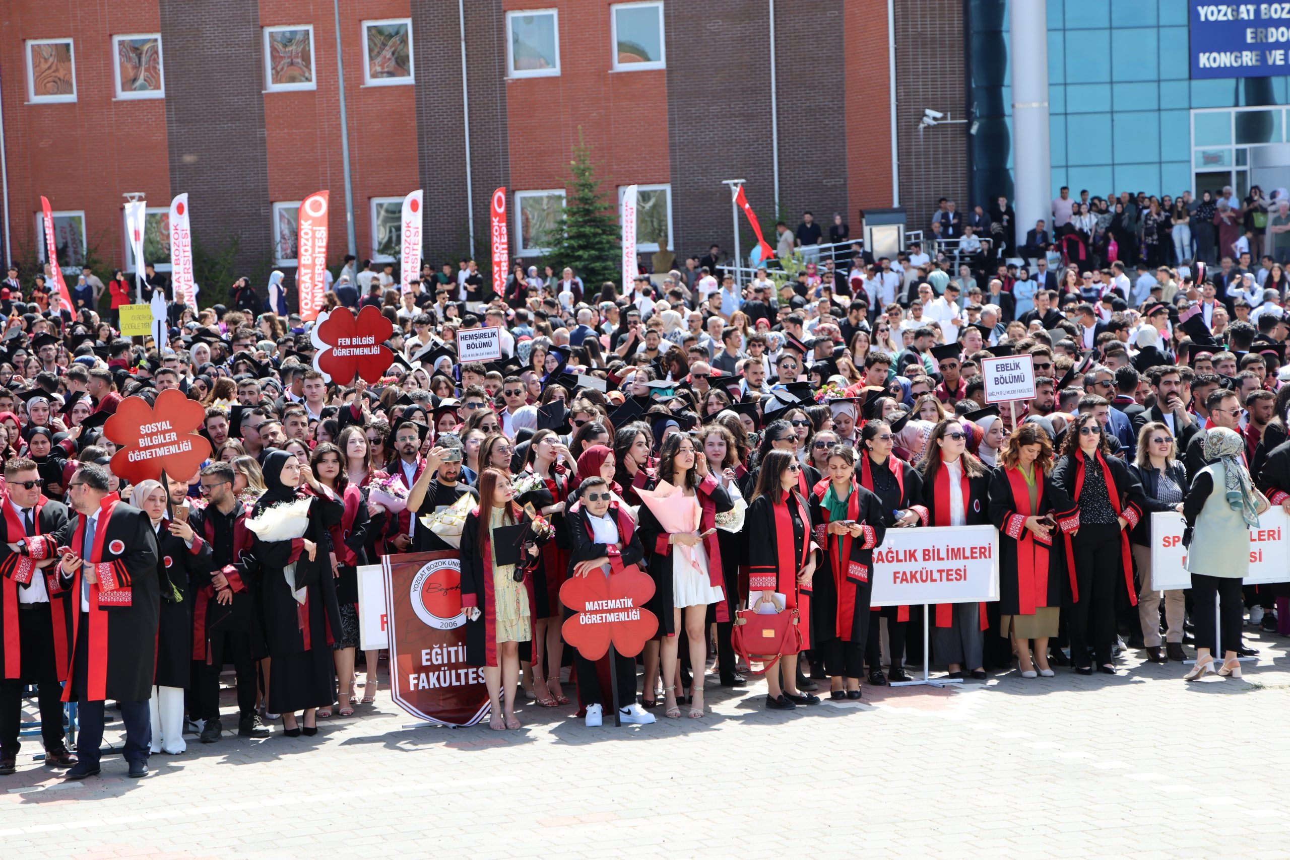 Yozgat Bozok Üniversitesi’nde 2024-2025 akademik yılı lisans eğitimini başarıyla tamamlayan öğrenciler, görkemli bir mezuniyet töreniyle uğurlandı. Eğitim Fakültesi, Sağlık Bilimleri Fakültesi, Spor Bilimleri Fakültesi, Mühendislik-Mimarlık Fakültesi ve Ziraat Fakültesi öğrencileri, üniversite merkez kampüsünde düzenlenen törenle mezuniyet sevinci yaşadı.