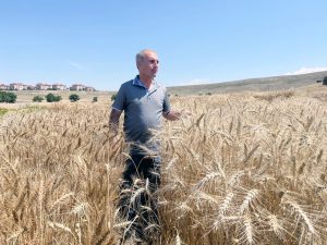 Yozgat Bozok Üniversitesi Yerköy Tarımsal Uygulama ve Araştırma Merkezi’nde ıslah çalışmalarını yürüten Aktaş, bu sene ıslah çalışmaları için verimli bir yıl olduğunu söyledi. Yağışların bol olduğunu, yağışlara bağlı olarak ta hastalıkların da olduğuna vurgu yapan Aktaş, hastalıkların olmasının kendileri açısından önemli olduğunu çünkü hastalıklara karşı hassas olan buğday çeşidini eleme imkanı bulduklarını vurguladı. Tarımsal Uygulama ve Araştırma Merkezinde yaklaşık bir yıldır 285 adet ekmeklik buğday da farklı kombinasyondaki ıslah çalışmaları yaptıklarının altını çizen Aktaş, “Yozgat iline, Orta Anadolu bölgesine hem kuru hem sulu şartlara uygun seleksiyon kriterlerimiz var, yeni çeşit geliştirme çalışmaları içindeyiz. Son yıllarda iklimdeki ekstrem durumları biliyorsunuz. Bu yılda çok farklı bir yıl oldu, hem yağış açısından hem gece gündüz sıcaklıkları açısından. Nisan-Mayıs aylarında eksi 4’ler, eksi 13’ler civarında ekstrem uzun yıllar ortalamasından sapan sıcaklık değerleri yaşadık. Adaptasyon yeteneği yüksek, yüksek verimli, kaliteli. Bölge çiftçilerimiz de bu yıl hastalıklar konusunda problemler çektiler. Başta sarı pas olmak üzere dayanıklı yeni çeşit geliştirme çalışmalarımız devam etmektedir. Şu an 6 bin adet tek başak seçimi yaptık, gelecek yıl bunları çoğaltıp diğer testlerini de tamamladıktan sonra tescil ettirme niyetindeyiz. Beyaz kırmızı ama ağırlıklı olarak kırmızı tane üstün çalışmalarımızı yürütmekteyiz. Bölgede domuz zararı fazla olduğu için kılçıksız hatlara daha az önem veriyoruz, daha çok kılçıkları üstünden gitmeye çalışıyoruz. Yaptığımız bu kombinasyonların içinden ilimize uygun yeni çeşitleri çıkarıp tescil ettirip, ülkemize kazandırmak istiyoruz. Birini çoğaltıp tek başaktan beğendiklerimi, kalitesi, verim iyi olanları yeni bir çeşit olarak tescil ettirmeye çalışacağı. “Kırmızı başaklı, beyaz başaklı, kılçıklı var, kılçıksız var. Tane rengi beyaz olan var, kırmızı olan var, boyu kısa olanları daha çok sulu koşullar için uzun olanları kuru ve kıraç yağışın daha az olduğu yerler için ıslak için seleksiyon kriterlerimiz var, onu yapacağız. Yaklaşık 285 adet farklı anne babayı melezlendik. 2017’den beri bunları kendileyip durultup, daha sonra bu yıl işte 6 bin adet başağı ekip, onlardan çeşide doğru gideceğiz. 6 metrekare şu an her bir parselimiz. Dekara çevirdiğiniz zaman 700-800 kilogram civarında bir verim var. Sulama olarak yağışlar güzel gitti. Yerköy bölgesi rakım olarak da Yozgat’tan çok farkı, ekoloji olarak da farklı olduğu için çıkışta tek su verdik. Çıkışı ıslah materyal olduğu için garanti altına almak için. Onun dışında yağışlarla devam ettik’’ dedi. Haber Merkezi