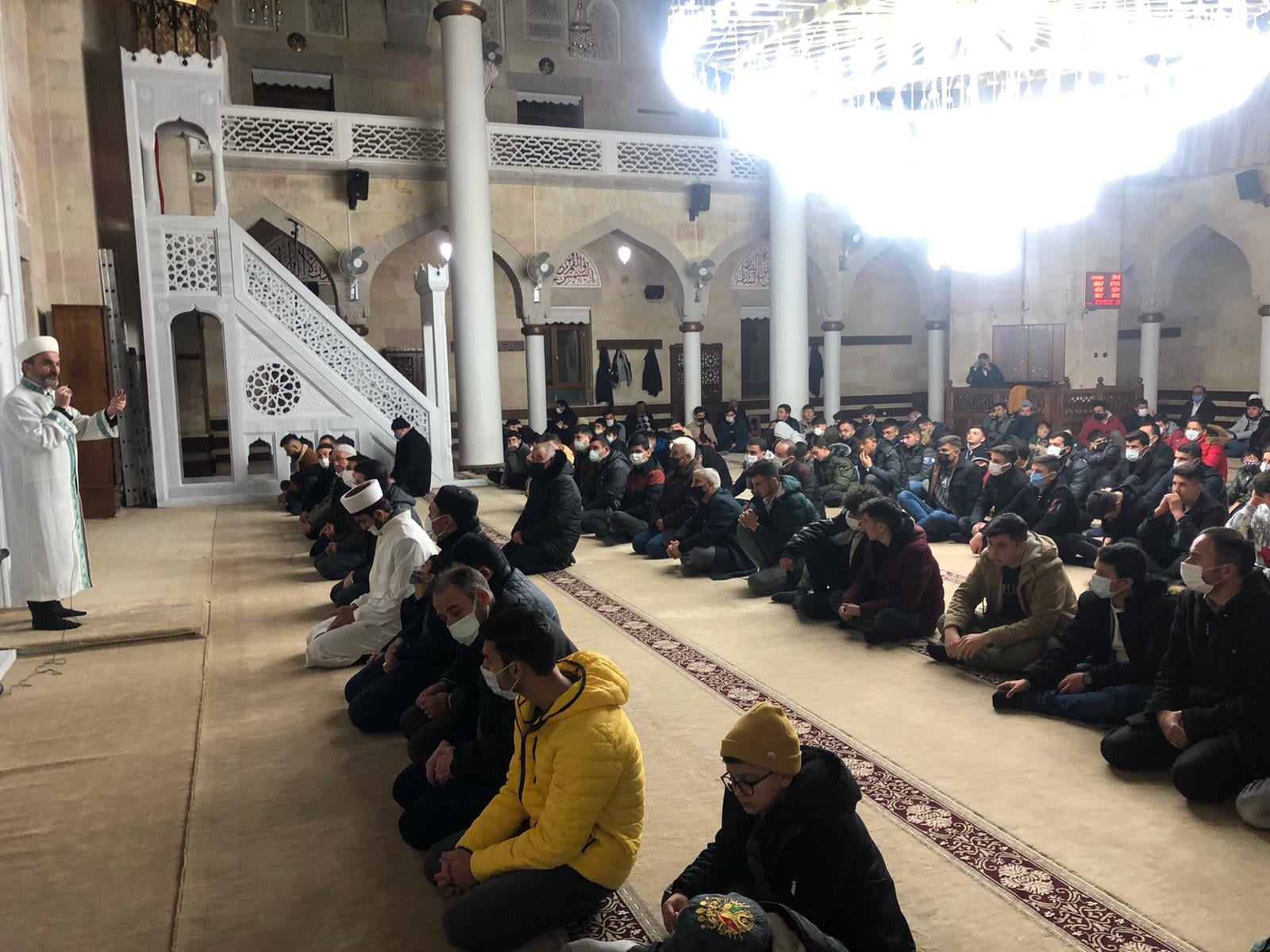 Kılınan akşam namazı sonrası ikram edilen yemeğin ardından camide bir araya gelen katılımcılara İl Müftüsü Ali Gülden tarafından sohbet gerçekleştirildi.