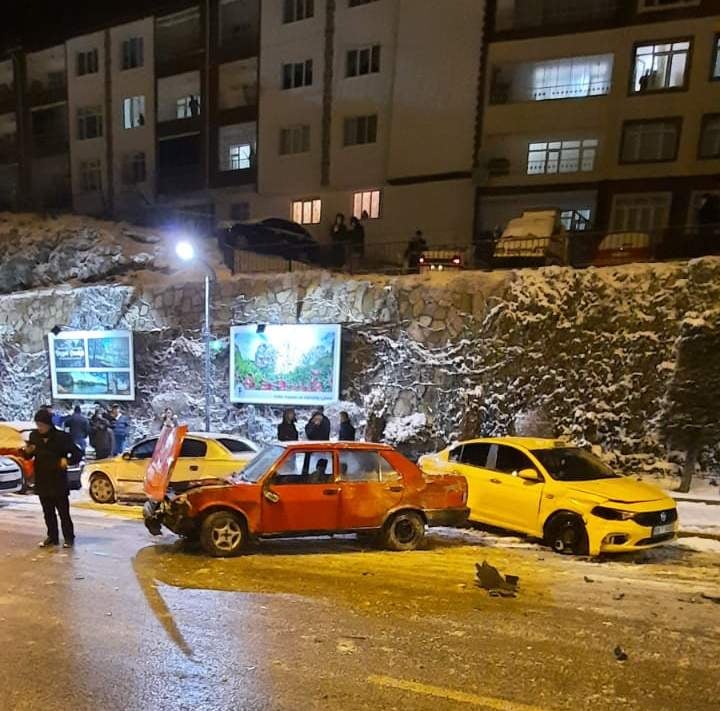 Yozgat’ta gün boyu etkili olan kar yağışı ve akşam hava sıcaklığının eksi derecelere düşmesi nedeniyle yolda oluşan buzlanma beraberinde kazaya neden oldu, 15 araç birbirine girdi.