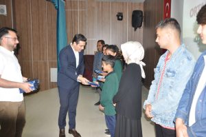 Dereceye giren öğrencilere ödüllerini Kaymakam Hayrettin Buğra Güzel, İlçe Milli Eğitim Müdürü Zeki Akkan , İlçe Müftüsü Fazıl Saraç verdi. İlçe Milli Eğitim Müdürü Akkan, ‘’Yarışmanın düzenlenmesinde görev alan okulumuza , katılım sağlayan öğrenci ve öğretmenlerimize teşekkür ederiz’’ dedi. Haber Merkezi