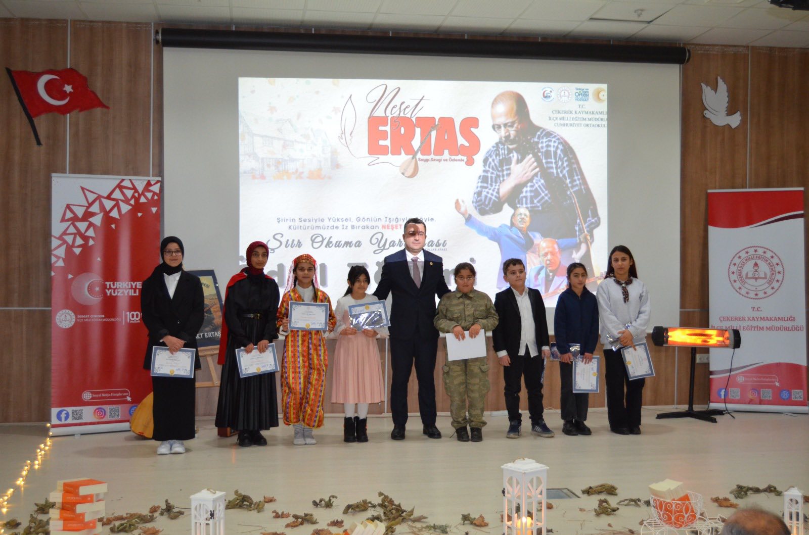 Çekerek İlçe Millî Eğitim Müdürlüğü himayelerinde, Cumhuriyet Ortaokulu Müdürlüğü organizasyonuyla ilçedeki ortaokullar arasında düzenlenen “Kültürümüzde İz Bırakan Neşet Ertaş” Şiir Okuma Yarışması, 29 Aralık 2025 tarihinde Çekerek Hükümet Konağı Konferans Salonu’nda gerçekleştirildi.