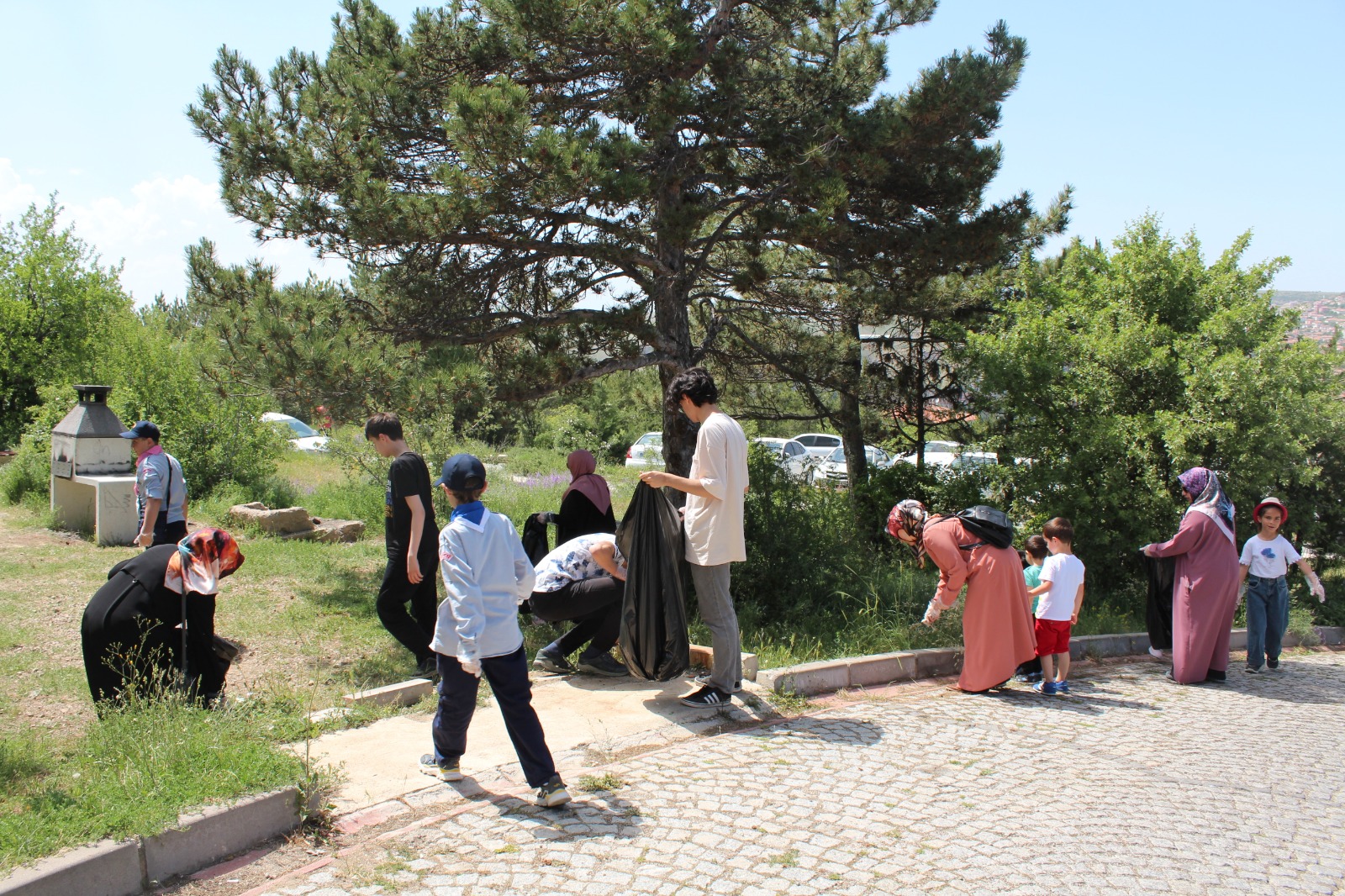 Ellerinde poşetlerle etrafa atılmış; plastik, cam ve diğer atıklarını toplayan ÇEKUD üyeleri, daha sonra piknik yaptı.