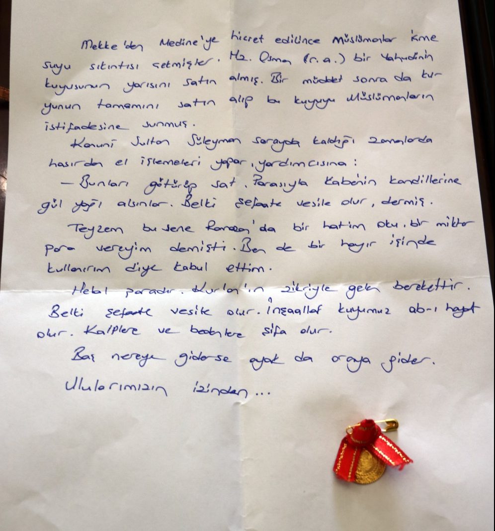 Saraykent ilçesinde kaymakamlık öncülüğünde Afrika’da su kuyusu açılmasına yönelik başlatılan kampanyaya Sorgunlu bir ev kadını yazdığı mektup ve mektuba iliştirdiği çeyrek altınla destek oldu.
