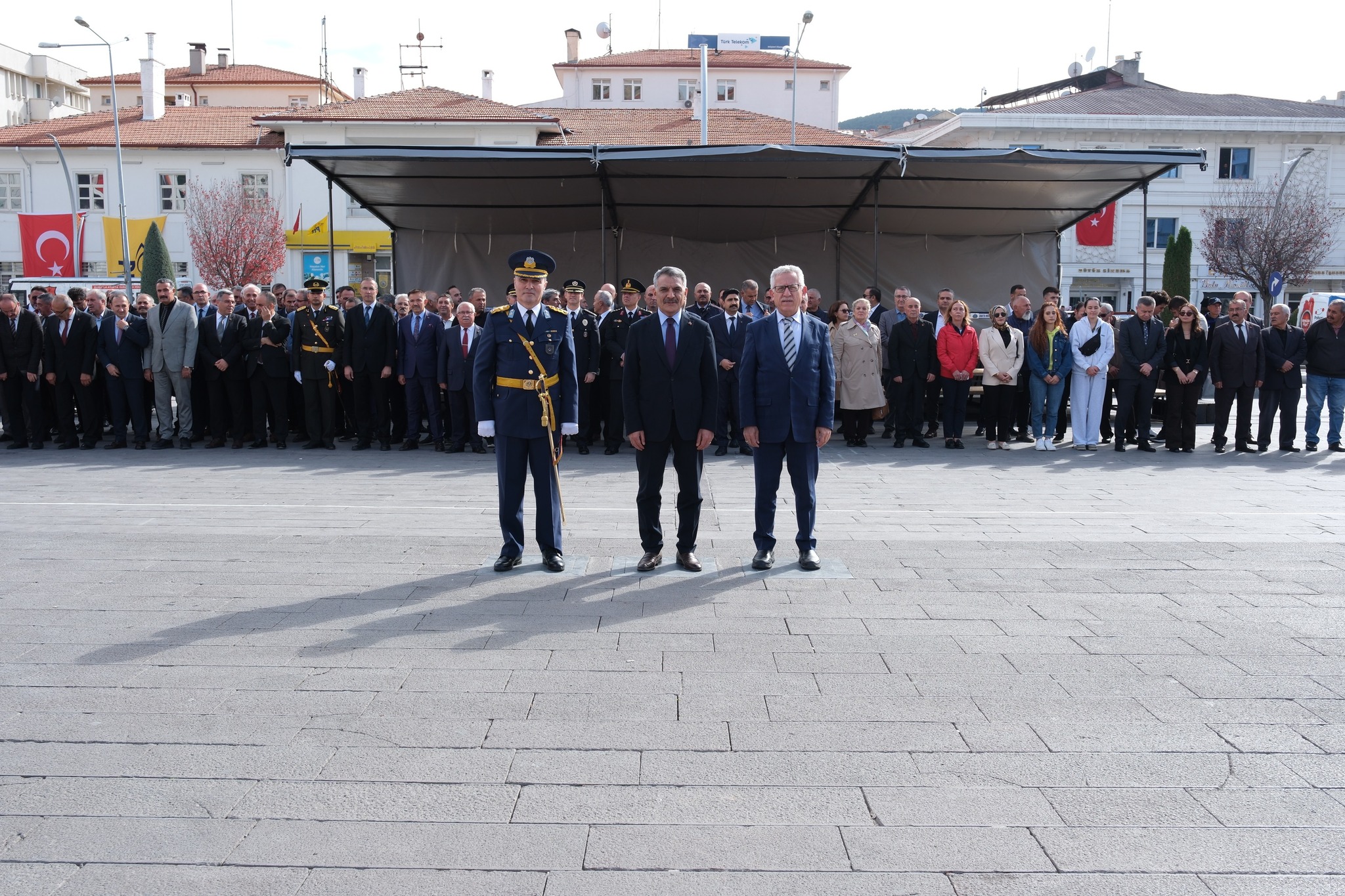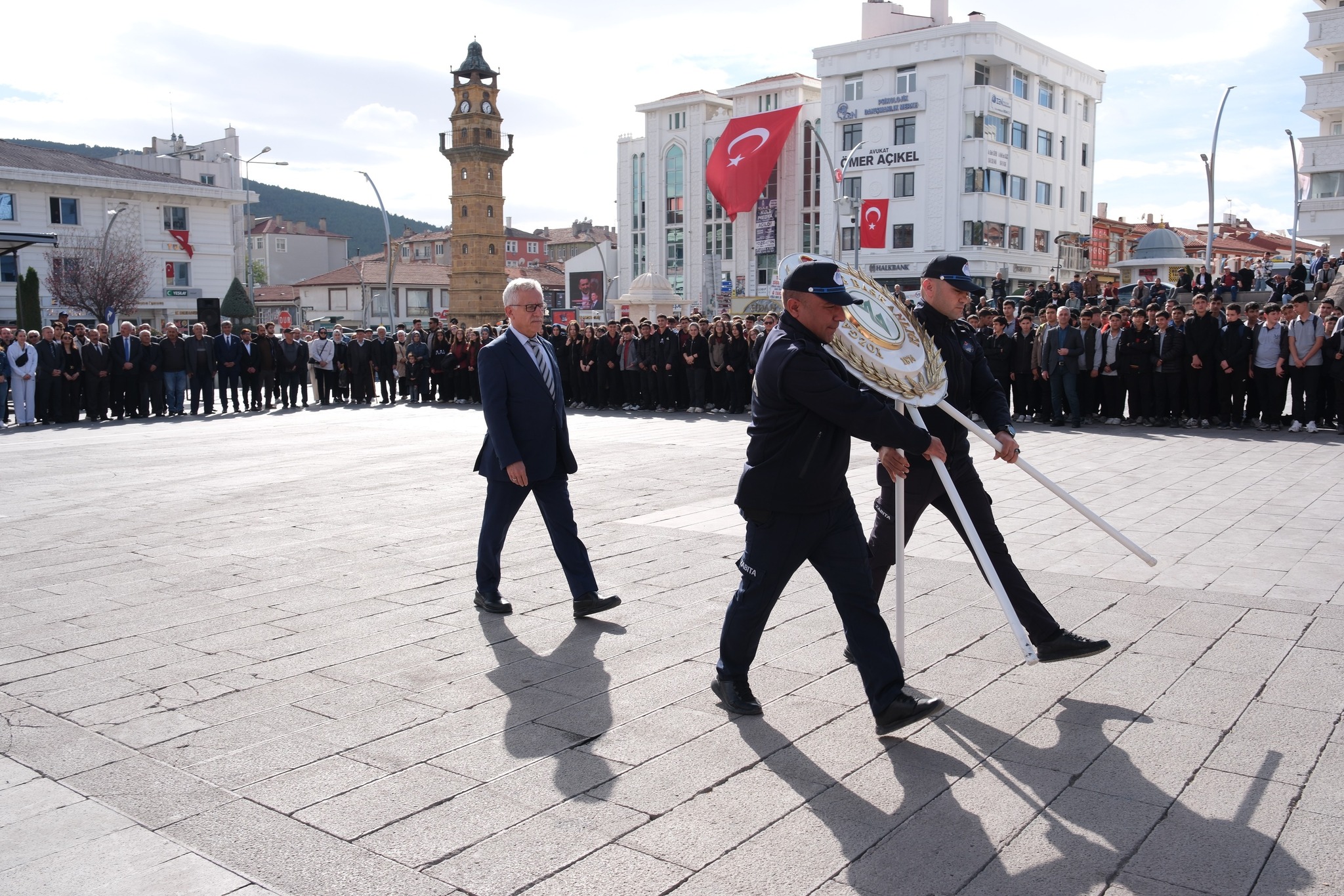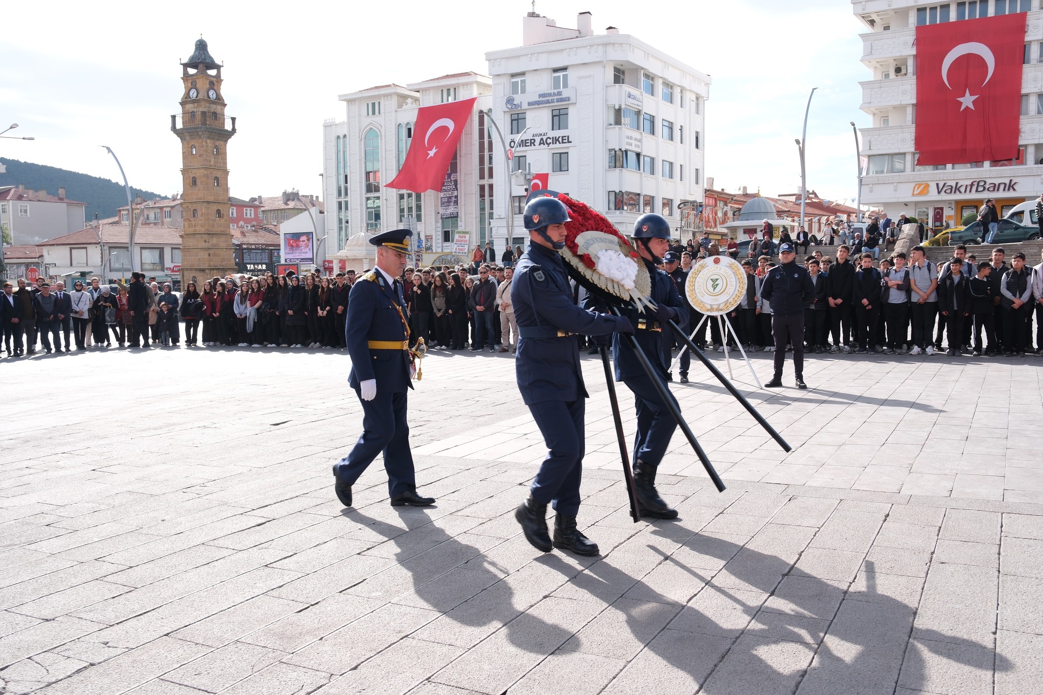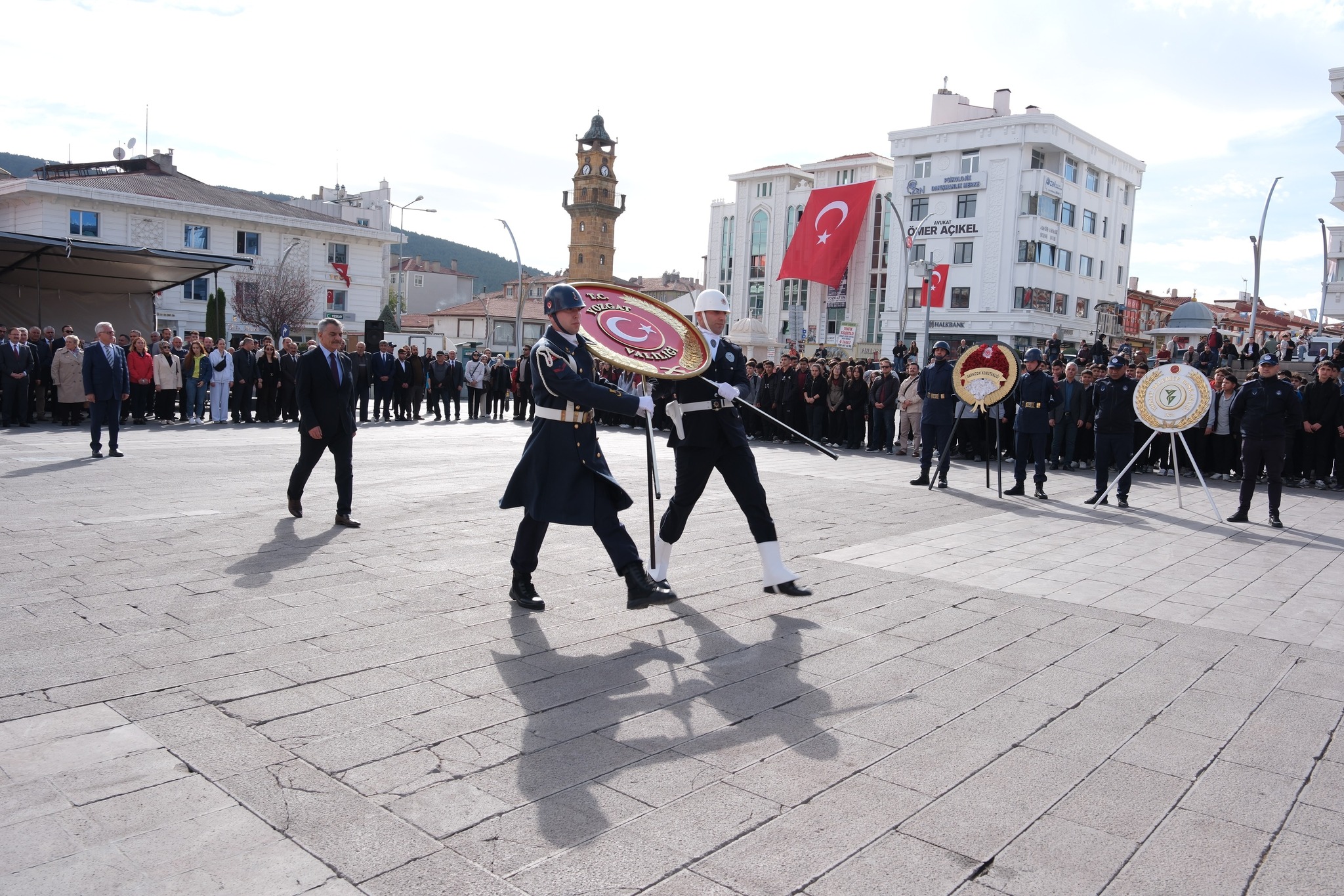 Cumhuriyet Meydanında düzenlenen Çelenk sunma törenine; Vali Mehmet Ali Özkan, Belediye Başkanı Kazım Arslan, Cumhuriyet Başsavcısı Enes Serdar Aydoğan, İl Jandarma Komutanı Kıdemli Albay Cezmi Yalınkılıç, İl Emniyet Müdürü Necmettin Koç, İl Genel Meclis Başkanı Adnan Ünal, İl Özel İdaresi Genel Sekreteri Nazif Yılmaz, İl Milli Eğitim Müdürü İsmail Altınkaynak, AK Parti İl Başkanı Hasan Kandemir, MHP İl Başkanı Tekin Irgatoğlu, CHP İl Başkanı Abdullah Yaşar, Aile ve Sosyal Hizmetler Müdürü Arif Topal, SGK İl Müdürü Yunus Demir, öğrenciler ve vatandaşlar katıldı./Osman Tolga YILMAZ
