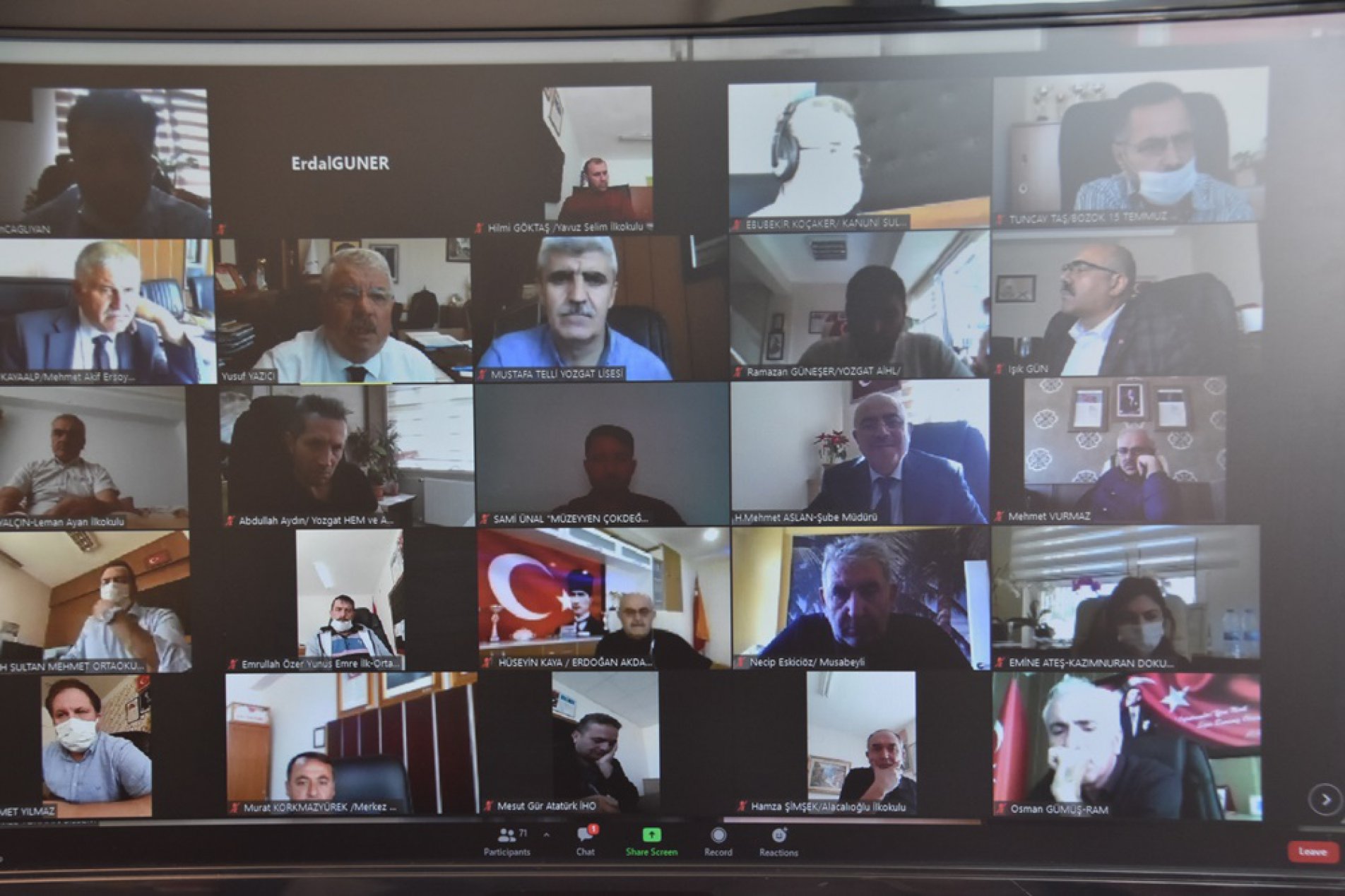 Yozgat İl Milli Eğitim Müdürü Yusuf Yazıcı başkanlığında Müdürlük yöneticileri, İlçe Milli Eğitim Müdürleri ve Merkez Okul Müdürlerinin katılımıyla video konferans sistemi üzerinden eğitim süreçlerini değerlendirme toplantısı yapıldı.