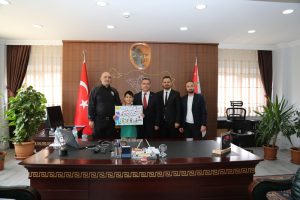 Yozgat İl Millî Eğitim Müdürlüğü ve İl Emniyet Müdürlüğü iş birliğiyle düzenlenen “Trafikte Kurallar” konulu resim yarışmasında dereceye giren öğrenciler, ödüllerini almak üzere İl Milli Eğitim Müdürü İsmail Altınkaynak ve Şube Müdürü Yasin Gürsoy ile birlikte İl Emniyet Müdürü Recep Tecimer’i makamında ziyaret etti.