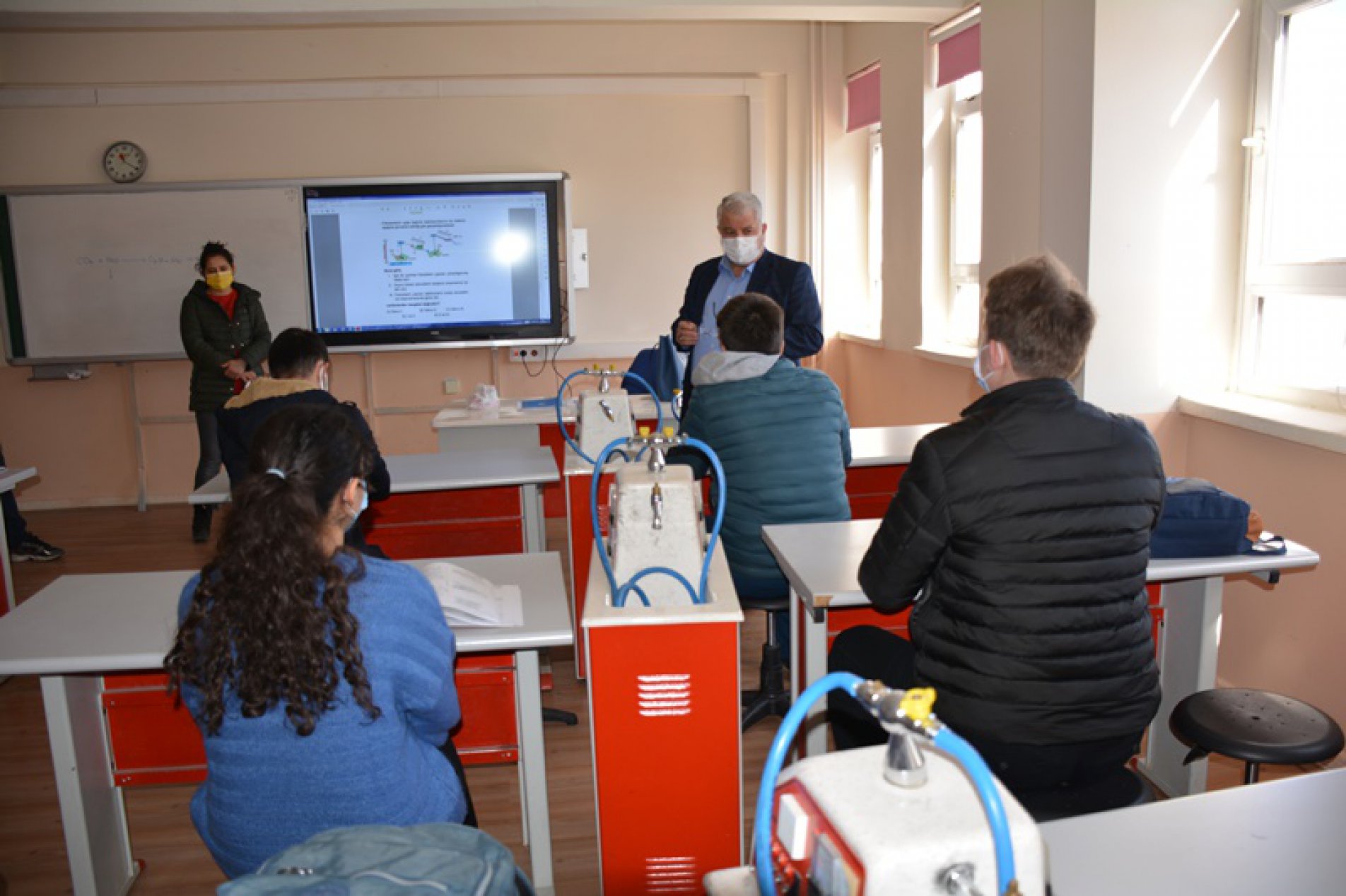 Okulların birimlerini de ziyaret eden Yazıcı salgın sürecinde alınan tedbirleri yerinde inceleyerek, okul idarecilerinden bilgi aldı.
