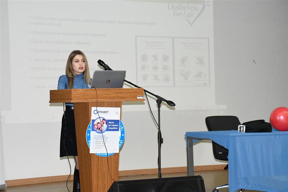 Etkinlikte ayrıca Hastane Diyetisyeni Ayşe Sağdıç, diyabetli bireylerin beslenme düzeni ve dikkat etmeleri gereken noktalar hakkında bilgilendirmelerde bulundu.