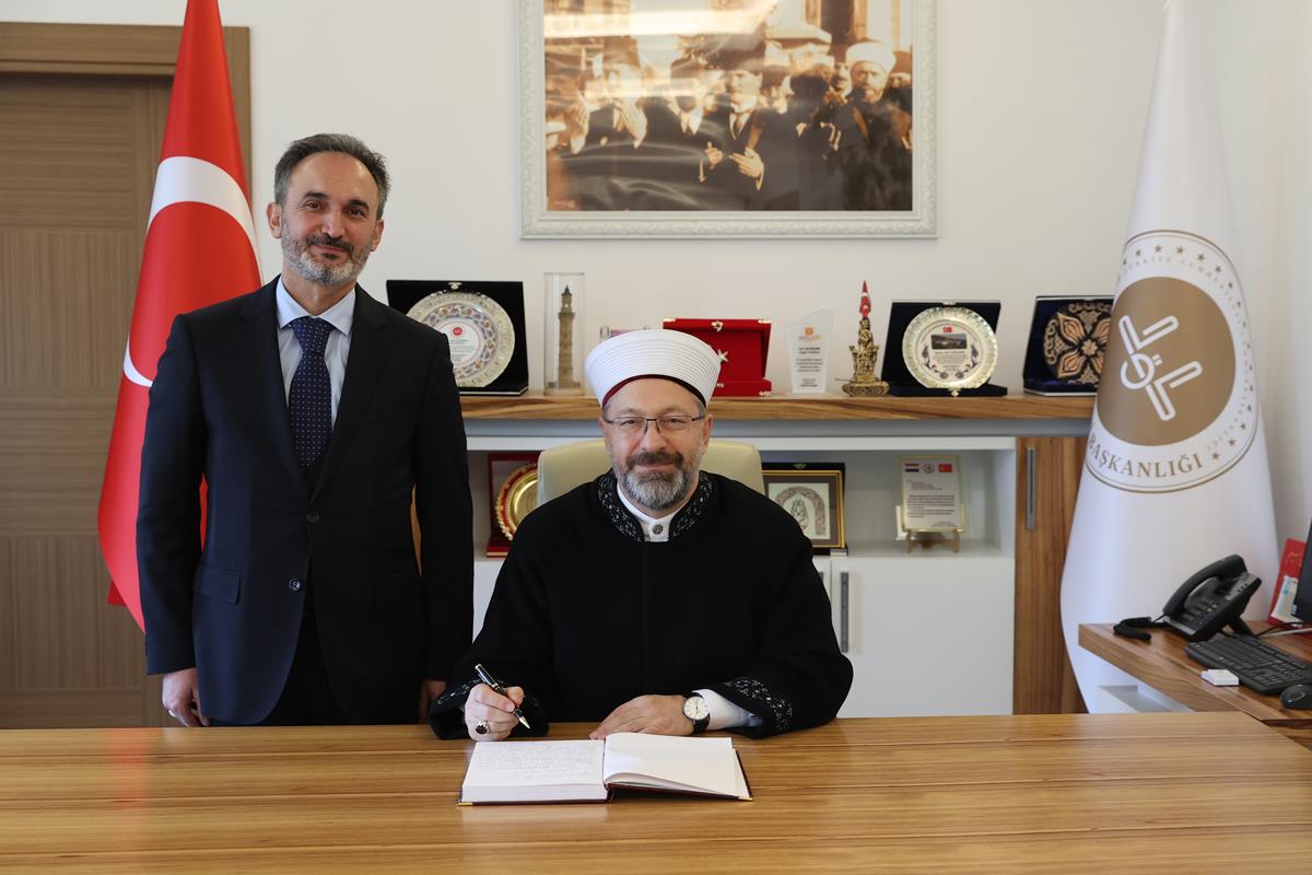 Vali Ziya Polat tarafından karşılanan Diyanet İşleri Başkanı Prof. Dr. Ali Erbaş, valilik şeref defterini imzaladı.