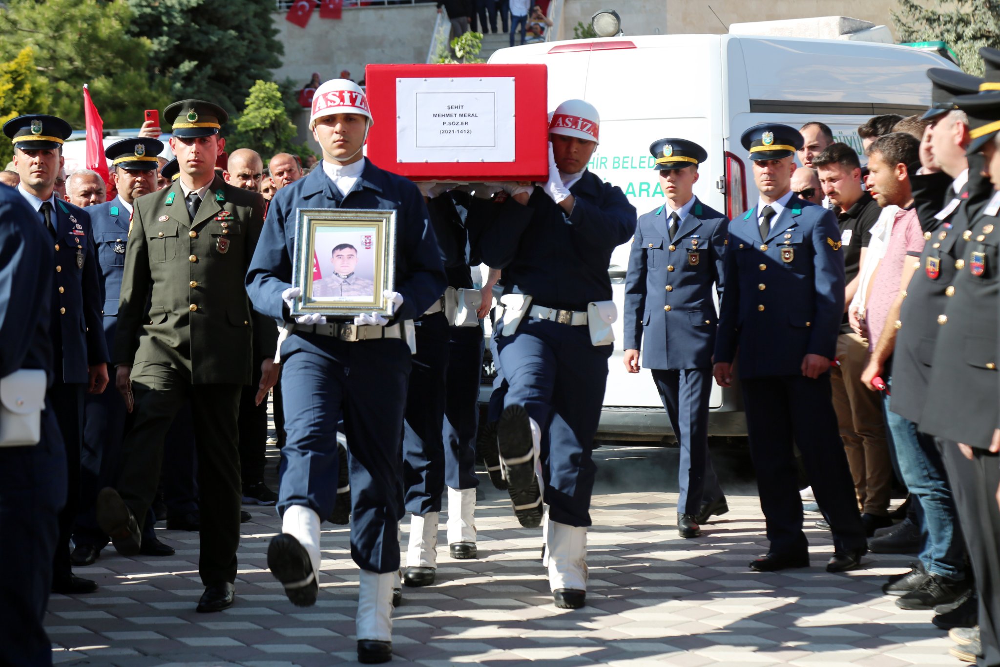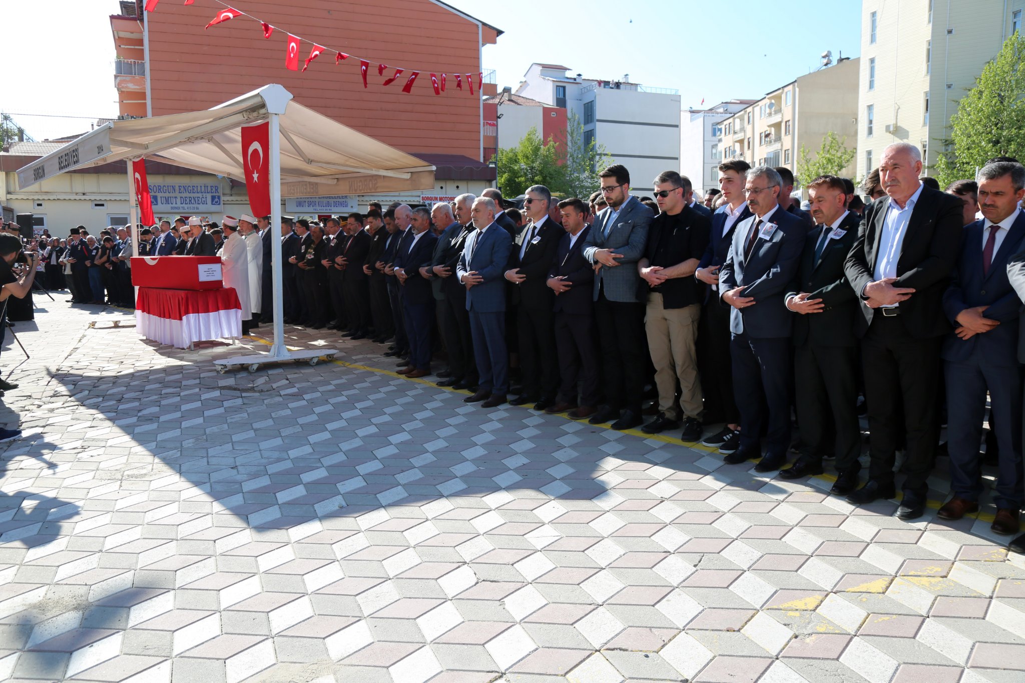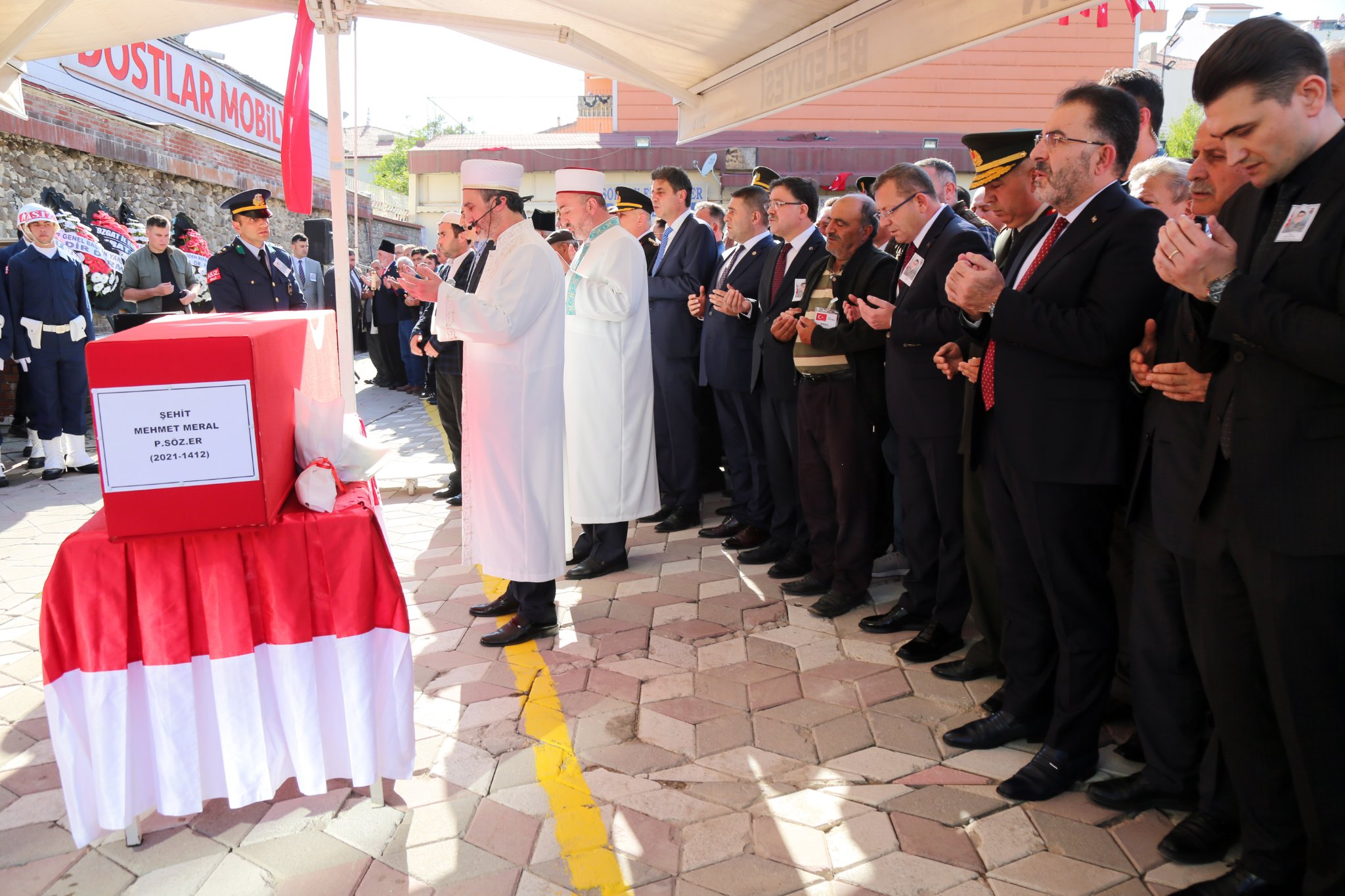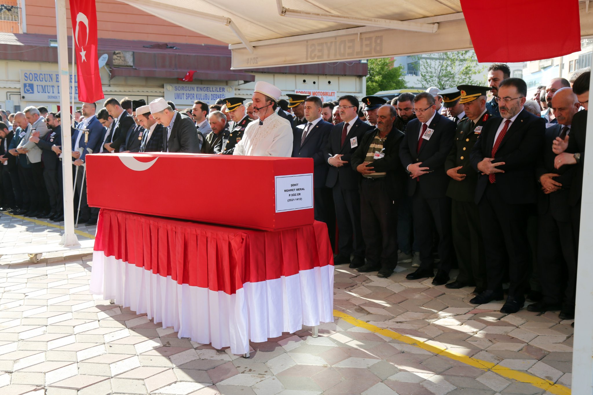 Sorgun ilçesine bağlı Küçüktaşlık köyündeki baba ocağında helallik alınmasının ardından 23 yaşındaki şehit Piyade Sözleşmeli Er Mehmet Meral’in naaşı Sorgun Belediye Meydanına getirildi. Şehit için ikindi vakti cenaze töreni düzenlendi.
