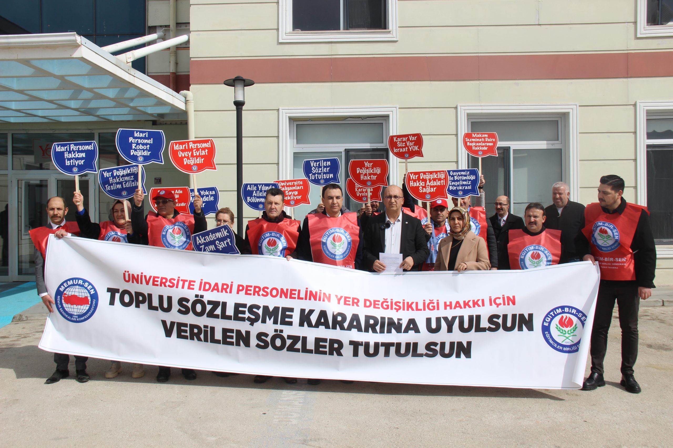 Eğitim-Bir-Sen Yozgat 2. Nolu Şube Başkanı Hasan Can, üniversite idari personeline yer değişikliği hakkı tanınması gerektiğini ifade etti. Başkan Can, sendika üyeleriyle birlikte Üniversite Merkez Yemekhanesi’nde düzenlediği basın açıklamasında, üniversite çalışanlarının haklarını iyileştirmeye yönelik taleplerini dile getirdi.