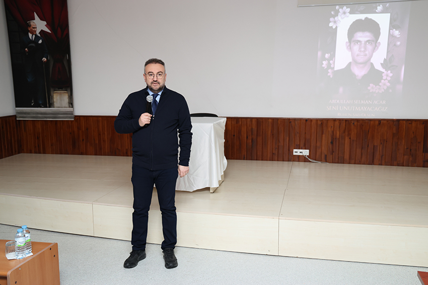 Eğitim Fakültesi Konferans Salonu’nda gerçekleştirilen programda, merhum öğrenci Abdullah Selman Acar’ın ruhu için Kur’an-ı Kerim tilaveti okunarak dualar edildi. Duygusal anların yaşandığı programda, öğrencinin anısı saygıyla yâd edildi.