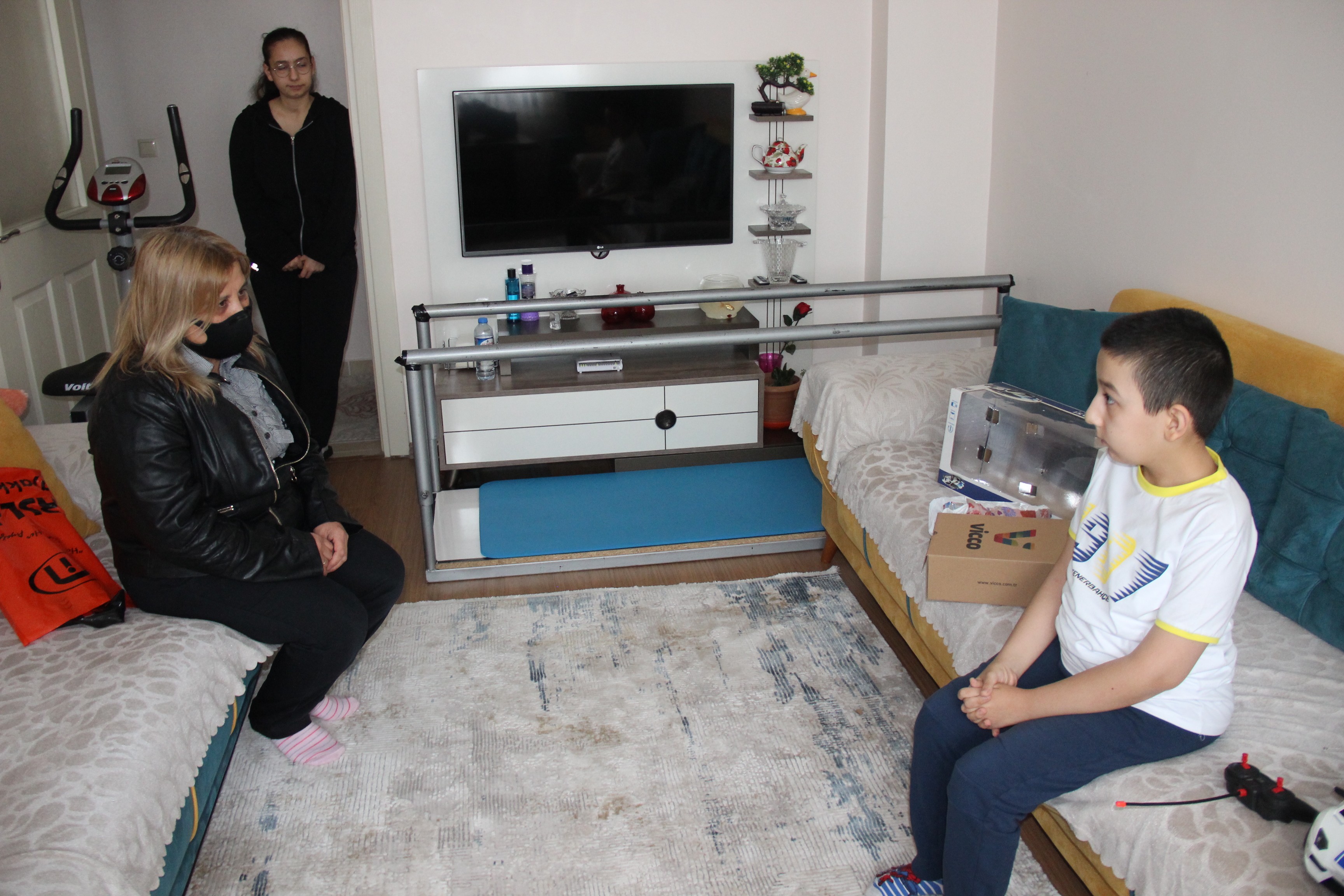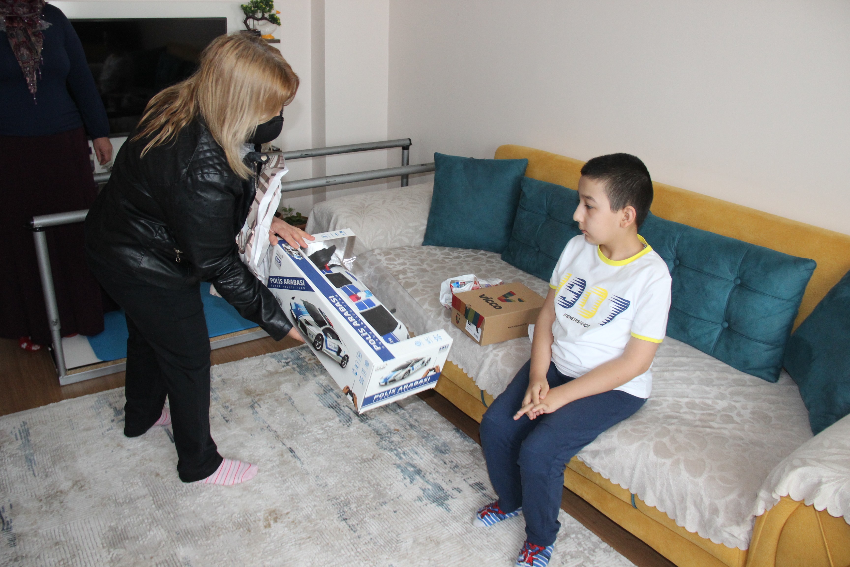Korona virüs (Covit-19) salgını nedeniyle okullarına gidemeyen çocuklar, 23 Nisan Ulusal Egemenlik ve Çocuk Bayramı’nı evlerinde kutlamak zorunda kaldı. Bu kapsamda Yozgat’ta İç Anadolu Ortopedik Engelliler Derneği, 11 yaşındaki doğuştan bedensel engelli 5. sınıf öğrencisi Hüseyin Mert Satıcı’yı evinde ziyaret ederek 23 Nisan sürprizi gerçekleştirdi. Dernek başkanı Hamide Taşarslan, yürüme engelli Hüseyin Mert Satıcı’nın bayramını kutlayarak çeşitli hediyeler verdi.