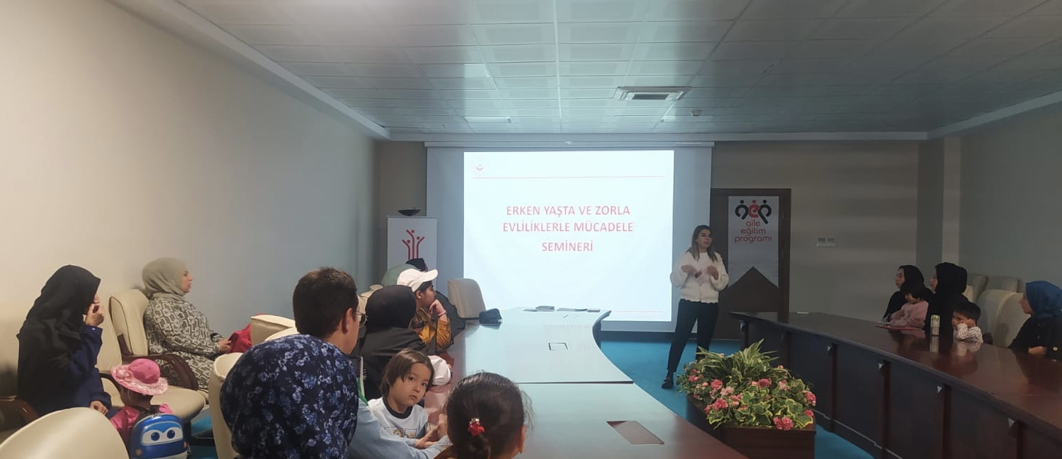Yozgat Valiliği Konferans Salonu’nda Yozgat Sosyal Hizmet Merkezi Müdürlüğü Aile Eğitim Programı formatörü Sosyolog Merve ER tarafından “Erken Yaşta ve Zorla Evliliklerle Mücadele” hakkında katılımcılar bilgilendirildi.