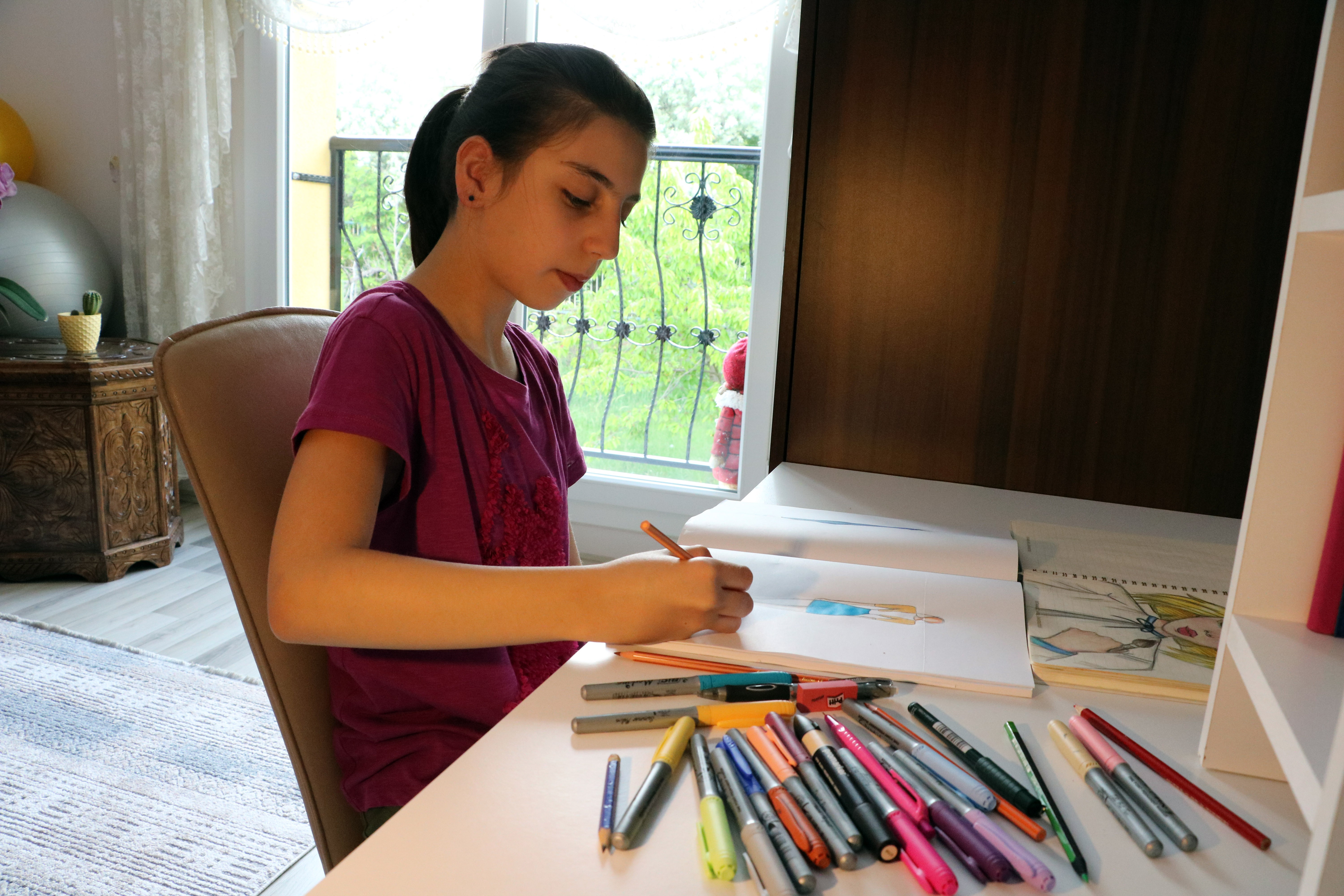 Daha çok hayal gücünü kullanarak tasarımlarını kağıda döken Elife Rana Erbek, “13 yaşındayım, Küçüklükten beri çizime merakım var, bu yüzden sürekli resim yapıp kendimi geliştirmek istiyorum. İleri de ünlü bir tasarımcı veya stilist olmak istiyorum. Korona virüs sürecinde kendimi daha da geliştirdim. Bu zaman zarfında Sağlık Bakanımız Fahrettin Koca’yı çizdim ve daha çok moda çizimine yöneldim. Çünkü ileri de ünlü bir tasarımcı olmak istiyorum. Bu yüzden evden çıkamadığım günlerde kendimi geliştirip tasarladığım hayal gücümle oluşturduğum çizimleri yapmaya çalıştım. Kendime özgü tasarımlarım olsun istedim.” dedi.