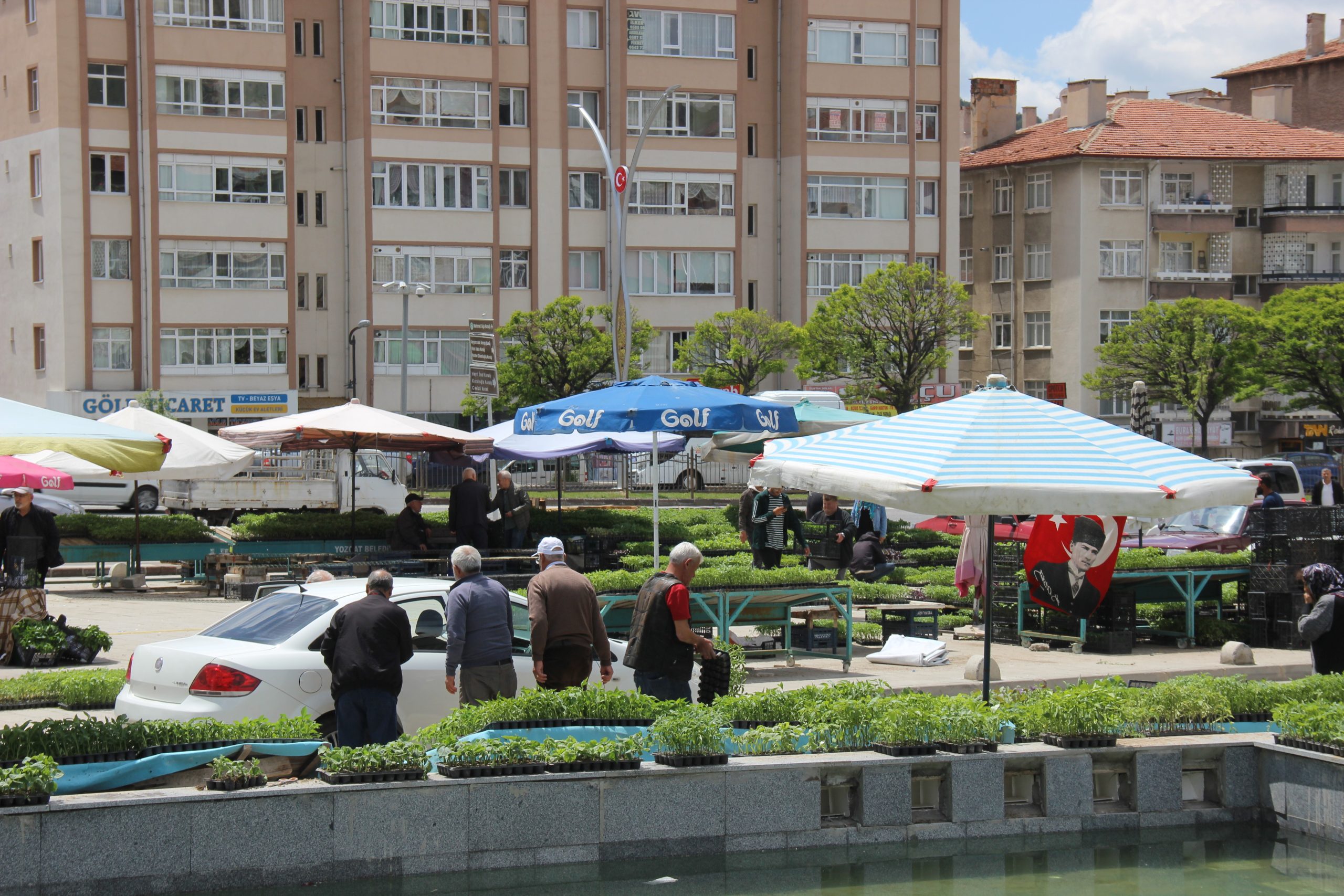 Yozgat’ta Nisan ayıyla birlikte satışa sunulan sebze fideleri satışı devam ediyor. Şehrin Un Pazarı aralığı ile Çapanoğlu Büyük Cami altındaki boş alanda açılan tezgahta; domates, biber, patlıcan, salatalık, kabak, kavun, karpuz, çilek gibi birçok meyve ve sebze fidelerinin satışı yapılıyor.