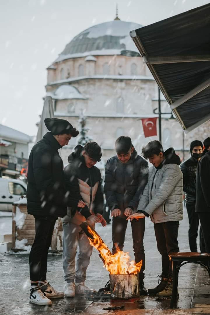 Yozgat Kuyumcular Caddesi’nde, Çapanoğlu Camisi önünde ateş yakarak ısınan gençleri fotoğraflayan Yunus Emre Sarıkaya ödülünü Yozgat İl Kültür ve Turizm Müdürü Hüseyin Çiftci’den aldı.
