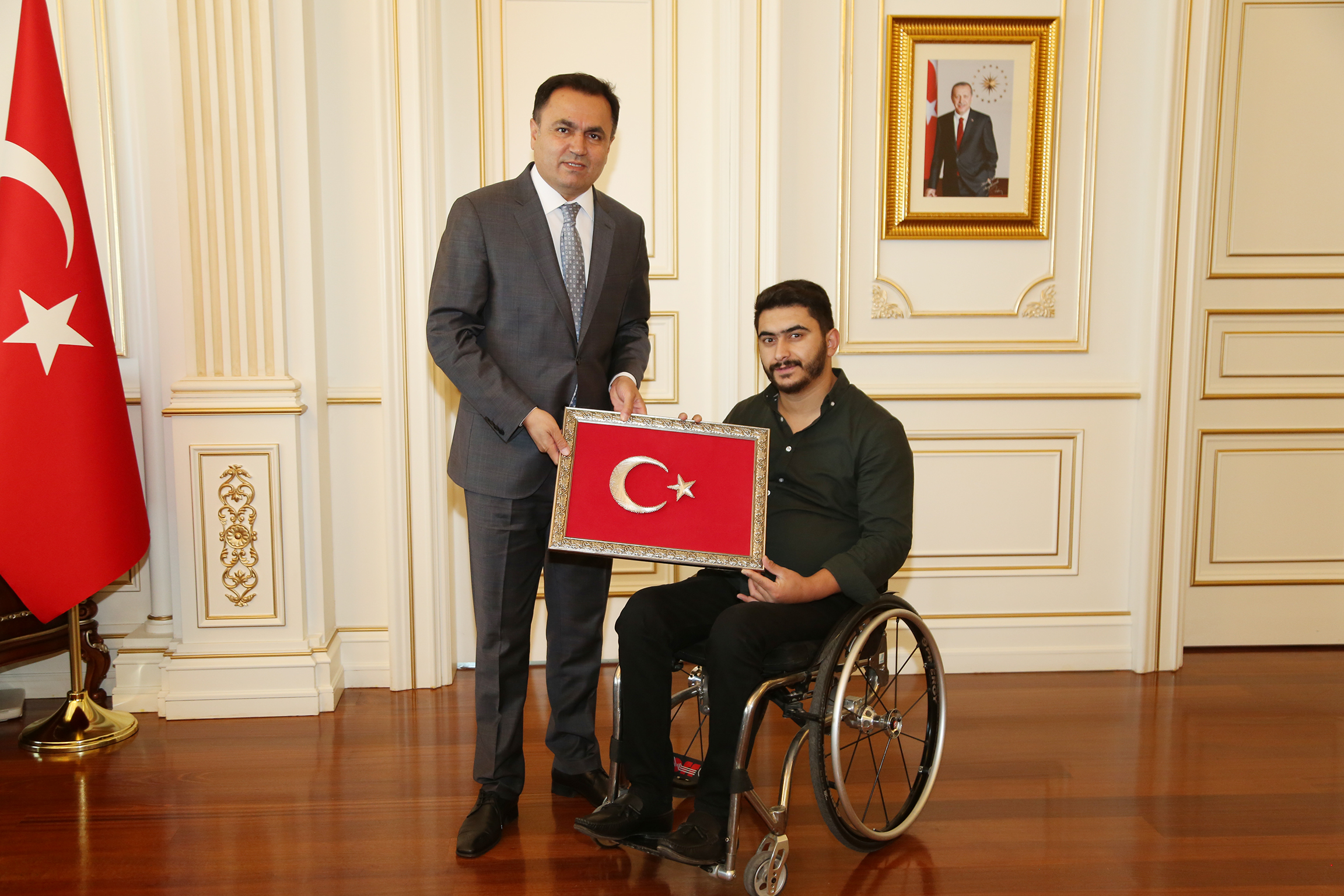 2016 yılında Kars Sarıkamış’ta bölücü terör örgütü mensupları ile girilen çatışmada yaralanan ve gazi olan Uzman Er Muammer Ceylan, Vali Kadir Çakır’ı ziyaret etti.