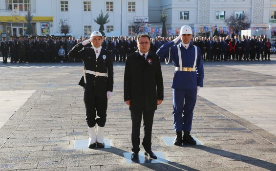 Cumhuriyet Meydanı’nda Atatürk Anıtı’na çelenklerin sunulmasının ardından saat 09.05’te sirenlerin çalmasıyla 2 dakika saygı duruşunda bulunularak, İstiklal Marşı okundu. Tören alanı çevresindeki vatandaşlar da siren sesi ile birlikte saygı duruşuna katıldı.