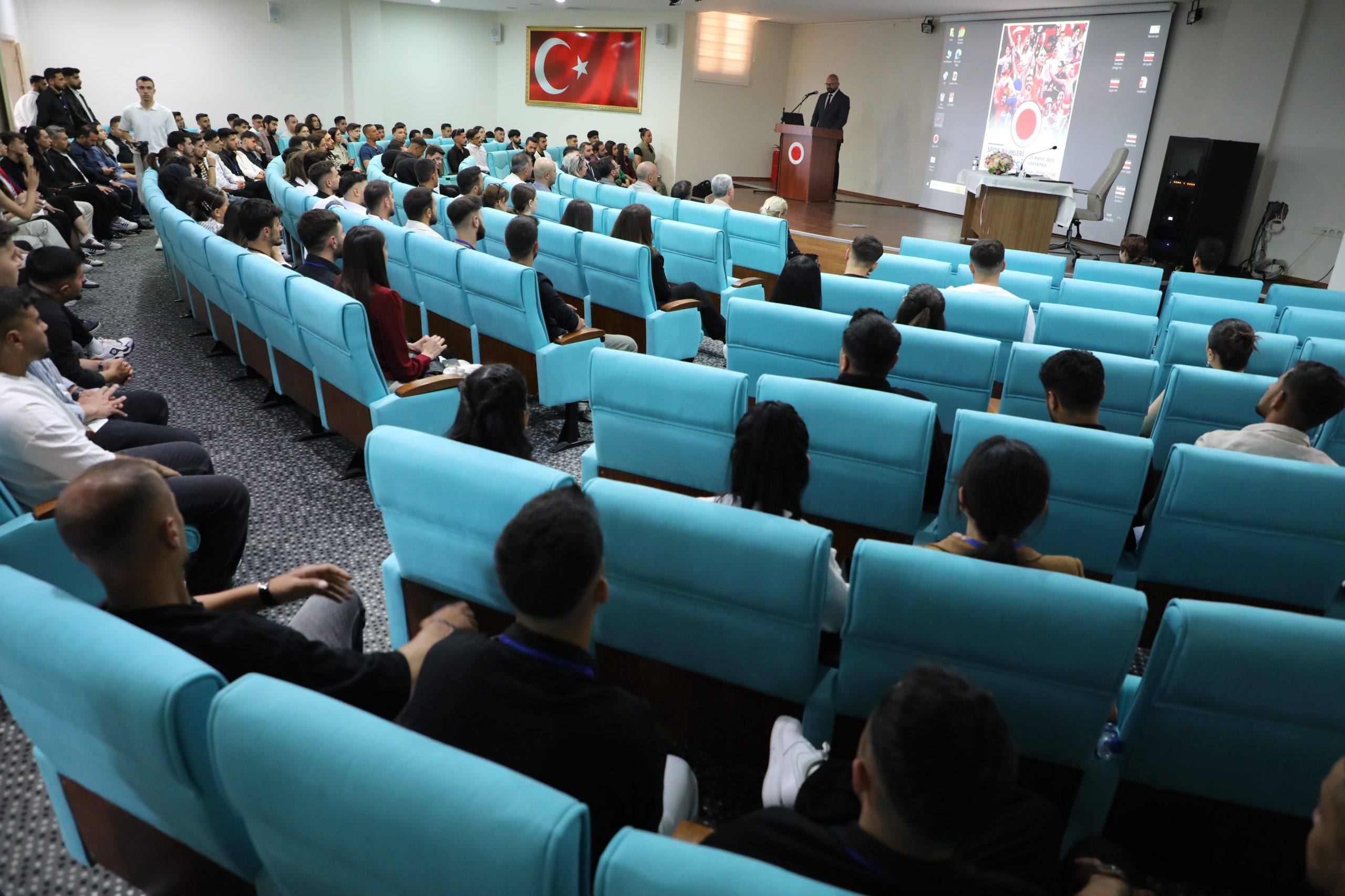 Açılış konuşmalarının ardından başlayan sözel oturumlarda, öğrenciler farklı başlıklar altında hazırladıkları sunumları gerçekleştirdi. “Geçmişten Günümüze Modern Olimpiyatlar”, “Futbolda VAR Sistemleri”, “Spor Bilimleri Fakültesi Öğretim Üyelerinin Yapay Zekâ Farkındalıklarının İncelenmesi” ve “Antrenman Yükü Belirleme Yöntemleri” gibi ilgi çekici konular, katılımcılardan büyük ilgi gördü.