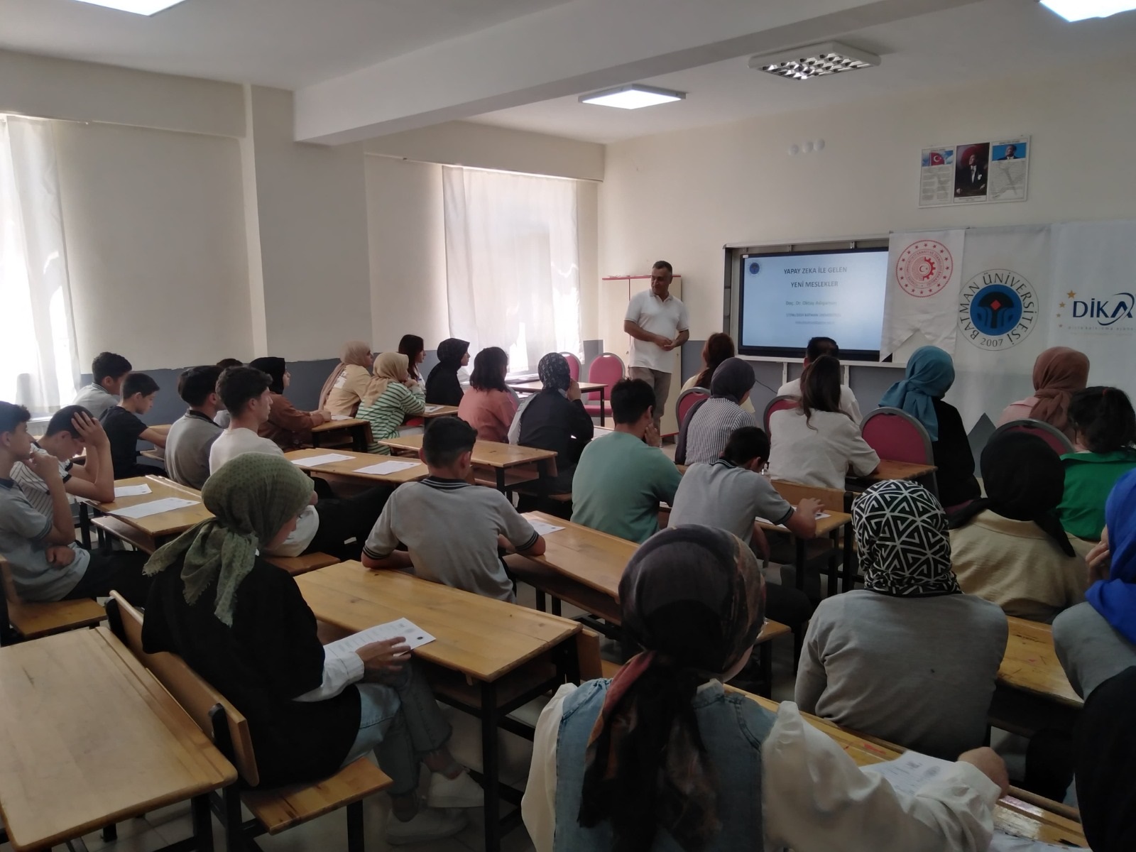 Doç. Dr. Oktay Adıyaman ise Sason Yücebağ Çok Programlı Anadolu Lisesi öğrenci ve öğretmenlerine yönelik yaptığı sunumunda “Yapay Zeka ile Gelen Yeni Meslekler” başlığı etrafında güncel konulara değindi. Yapay zeka ve onunla gelişen ve kaybolacak meslekler ile geleceğin meslekleri hakkında bilgiler verdi. Ayrıca DİKA (Dicle Kalkınma Ajansı) tarafından desteklenen yapay zeka tabanlı ve artırılmış gerçeklik destekli CNC operatörü ve kaynak simülatörü laboratuvarlarının tanıtımını da yapan Doç. Dr. Oktay Adıyaman, verdiği bilgilerle öğrenci ve öğretmenlerin ele alınan çalışmalarla ilgili kurslara katılma isteklerini artırdı.Okul yöneticileri tarafından akademisyenlere teşekkür plaketi takdim edildi. / Haber Merkezi