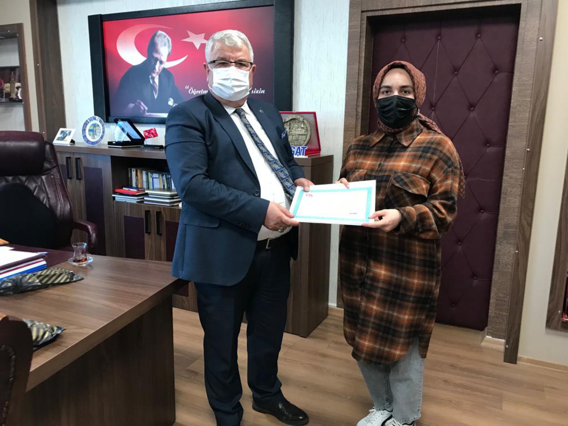 Sorgun Şehit Nusret Atmaca Kız Anadolu İmam Hatip Lisesi öğrencisi Zeynep Altunok, İl Milli Eğitim Müdürü Yusuf Yazıcı’yı makamında ziyaret ederek kendi yazdığı ”Kuşlardan Sonra” adlı kitabını hediye etti.