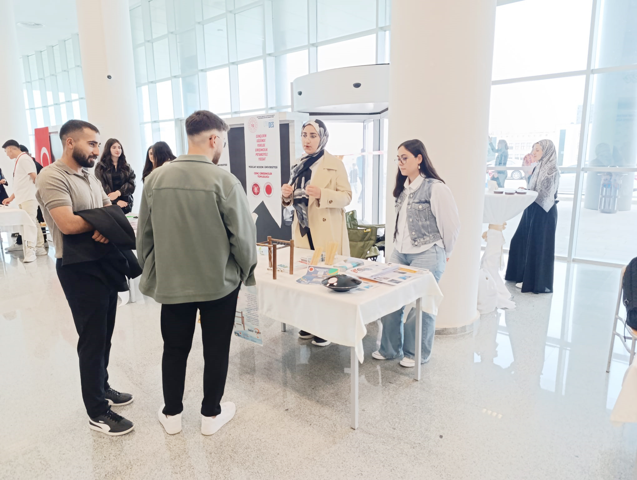 Bu anlamlı etkinlikte Yozgat Bozok Üniversitesi Fizik ve Astronomi Topluluğundan katılan Rabiya Kömür, Gülrana Gürsoy ve İrem Menek, açtıkları stant ile yürüttükleri faaliyetleri tanıttılar. Fizik ve Astronomi Topluluğu üyeleri, özellikle fizik ve astronomi alanlarında düzenledikleri seminerler hakkında bilgi verirken, topluluk bünyesinde kurulan roket takımı ve bu kapsamda yürütülen çalışmaları ile katılımcıların dikkatini çekti. Ayrıca, topluluk olarak sadece bilimsel alanlarda değil, topluma katkı sağlamayı hedefleyen sosyal projelere de önem verdiklerini vurguladılar.