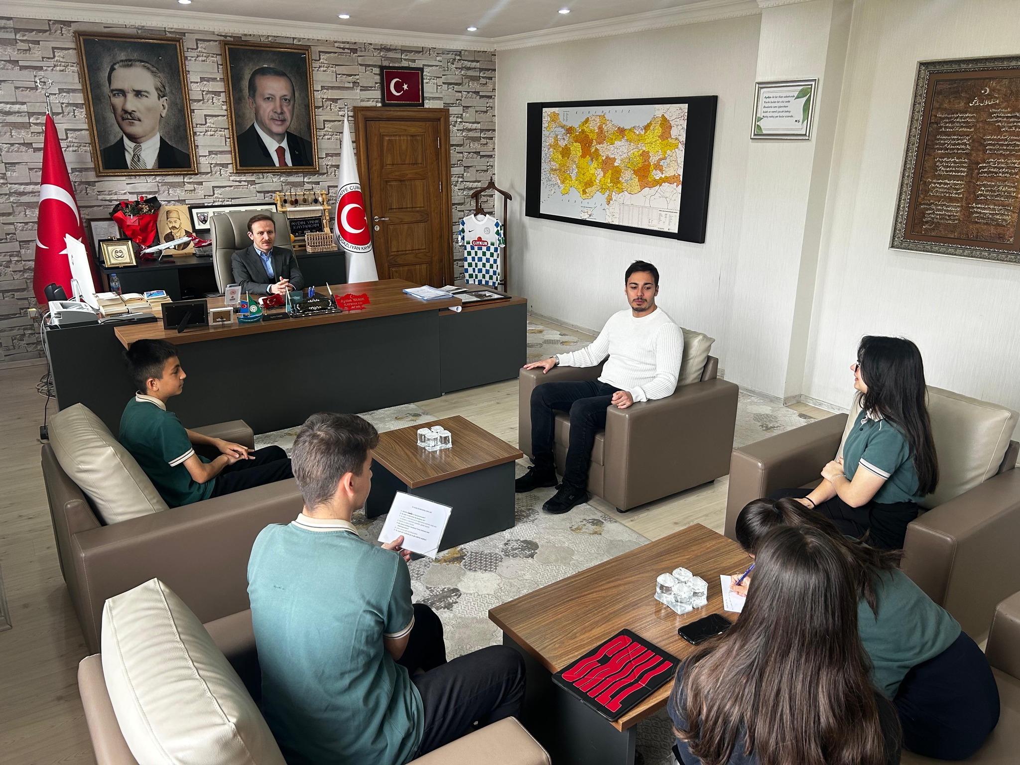 Boğazlıyan ilçesinde, çevre bilinci ve sürdürülebilir yaşam adına örnek bir çalışmaya imza atıldı. Boğazlıyan Milli Şehit Kaymakam Kemal Bey Fen Lisesi Biyoloji Öğretmeni Ali Can Yüksek ve 10. sınıf öğrencileri Yaren Canatan, Ali Osman Canlı, Badegül Eser, Talha Bingül ile Zeynep Sena Sarpdağ, İlçe Kaymakamı Aydın Yanık ile “su ayak izi” kavramı üzerine farkındalık oluşturmak amacıyla röportaj gerçekleştirdi.