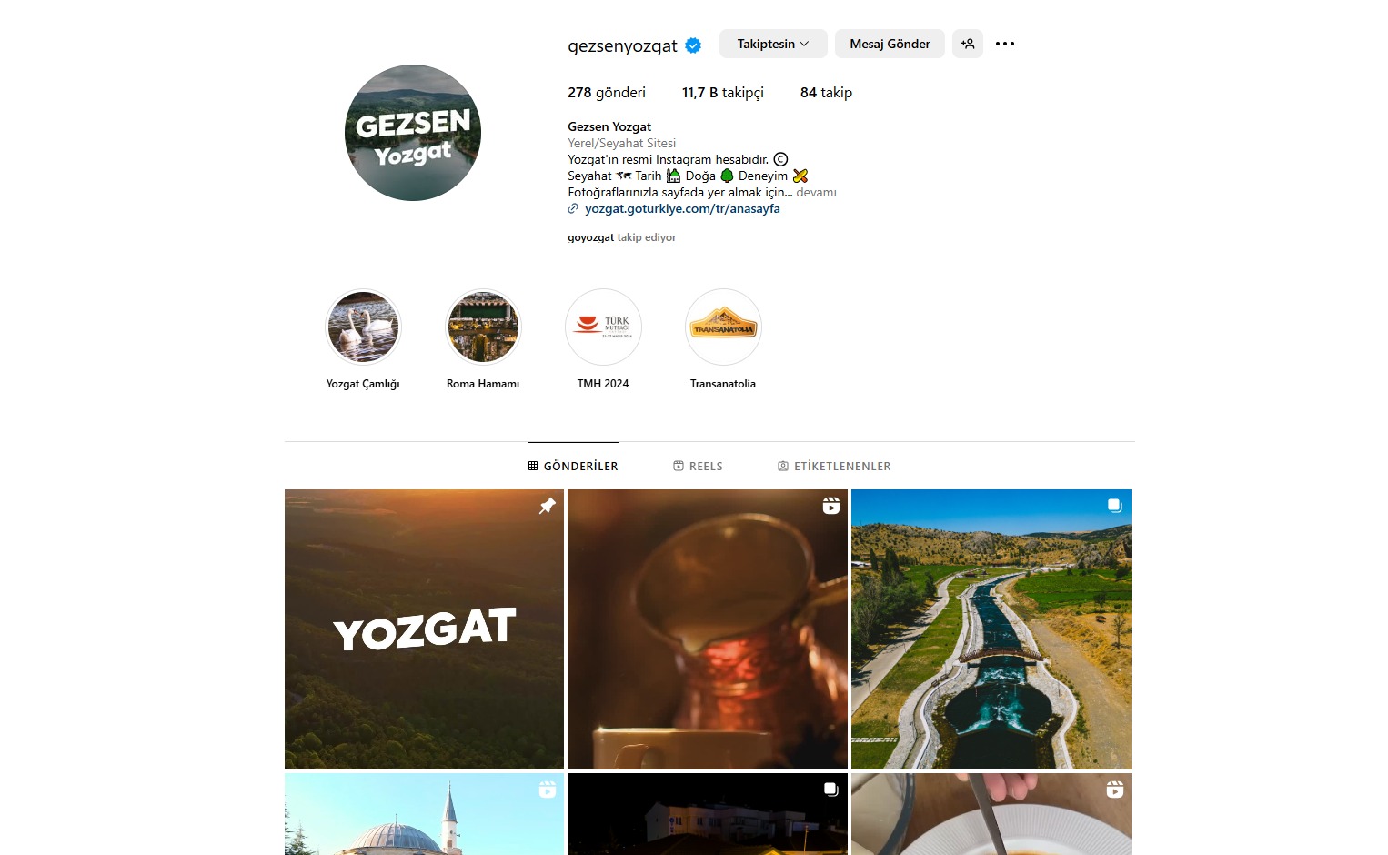 Yozgat Valiliği’nin resmi sosyal medya hesapları ve İl Kültür ve Turizm Müdürlüğü tarafından yönetilen “Gezsenyozgat” Instagram sayfası, ilin tanıtımına önemli katkılar sağlıyor.