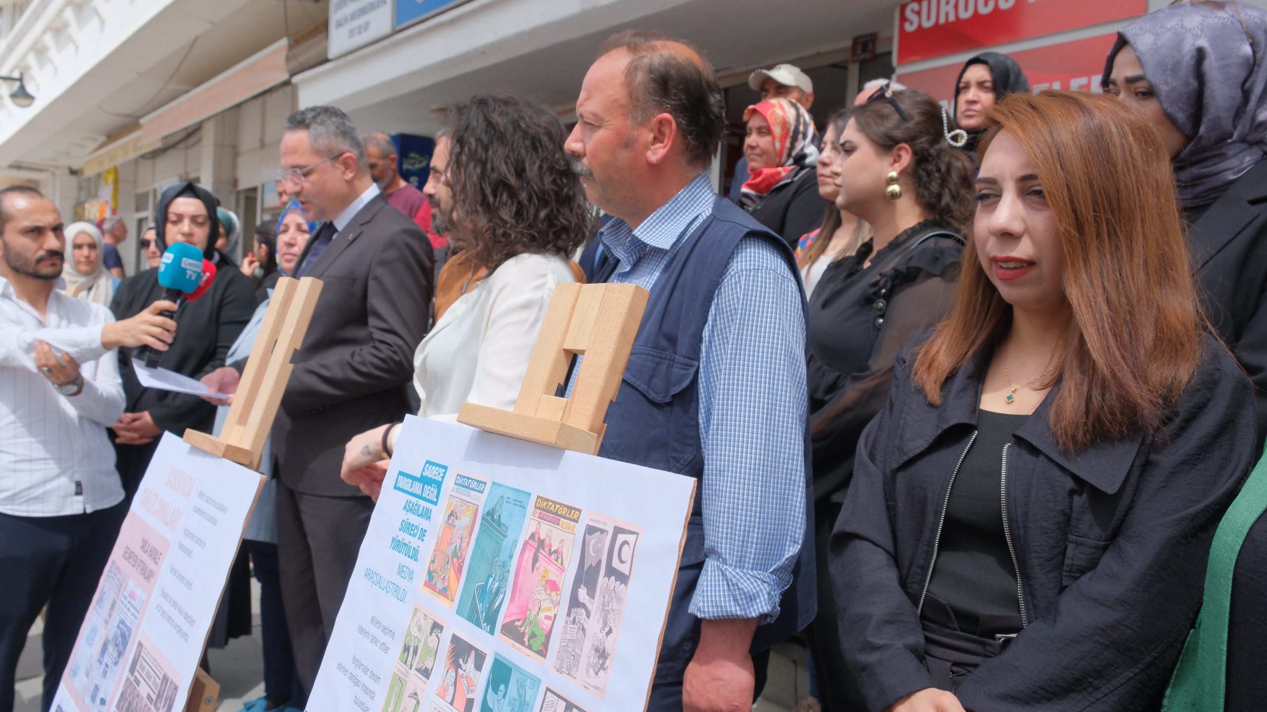 Basın açıklamasına AK Parti teşkilat üyeleri de ellerinde, darbenin yaşandığı süreci anlatan afişlerle katılarak destek verdi. / Haber Merkezi