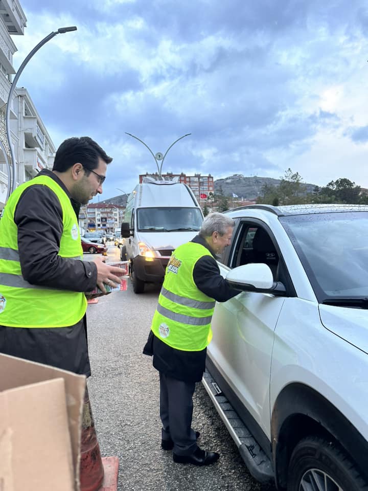AK Parti Yozgat Gençlik Kolları Başkanlığı tarafından iftara geç kalan vatandaşlar için hazırlanan kumanyalar dağıtılırken, vatandaşların zamanında oruçlarını açmasına imkan sunuyorlar. Yardımlaşma ve paylaşma konusuna özen gösteren AK Gençlik, araçları ile evlerine yetişmeyle çalışan yada oruçlarını açamayan vatandaşların yanlarına giderek hazırladıkları kumanyaları ikram ediyorlar. AK Parti Yozgat Gençlik Kolları Başkanı Yaşar Taşdemir, geçen yıl uygulamaya başladıkları ‘İftara 5 Kala’ çalışmalarına bu sene de devam ettiklerini söyledi. İftar saatinde, oruçlarını açma fırsatı bulayan vatandaşlara hazırladıkları kumanyaları ikram ettiklerini ve oruçlarını zamanında açmalarını sağladıklarını dile getiren Taşdemir, ‘’Göreve geldiğimiz günden buyana her zaman destek veriyoruz. Kar kış demeden İftara 5 Kala Gönlümüz Bir Soframız Bir anlayışı ile İftara 5 Kala etkinliğimiz kapsamında, Yozgat AK Parti AK Gençlik Teşkilat mensuplarımız ile birlikte İftara 5 Kala etkinliğini gerçekleştirdik. İftara yetişemeyen trafikte olan hemşehrilerimize iftariyelik ikramında bulunduk’’ dedi. Haber Merkezi