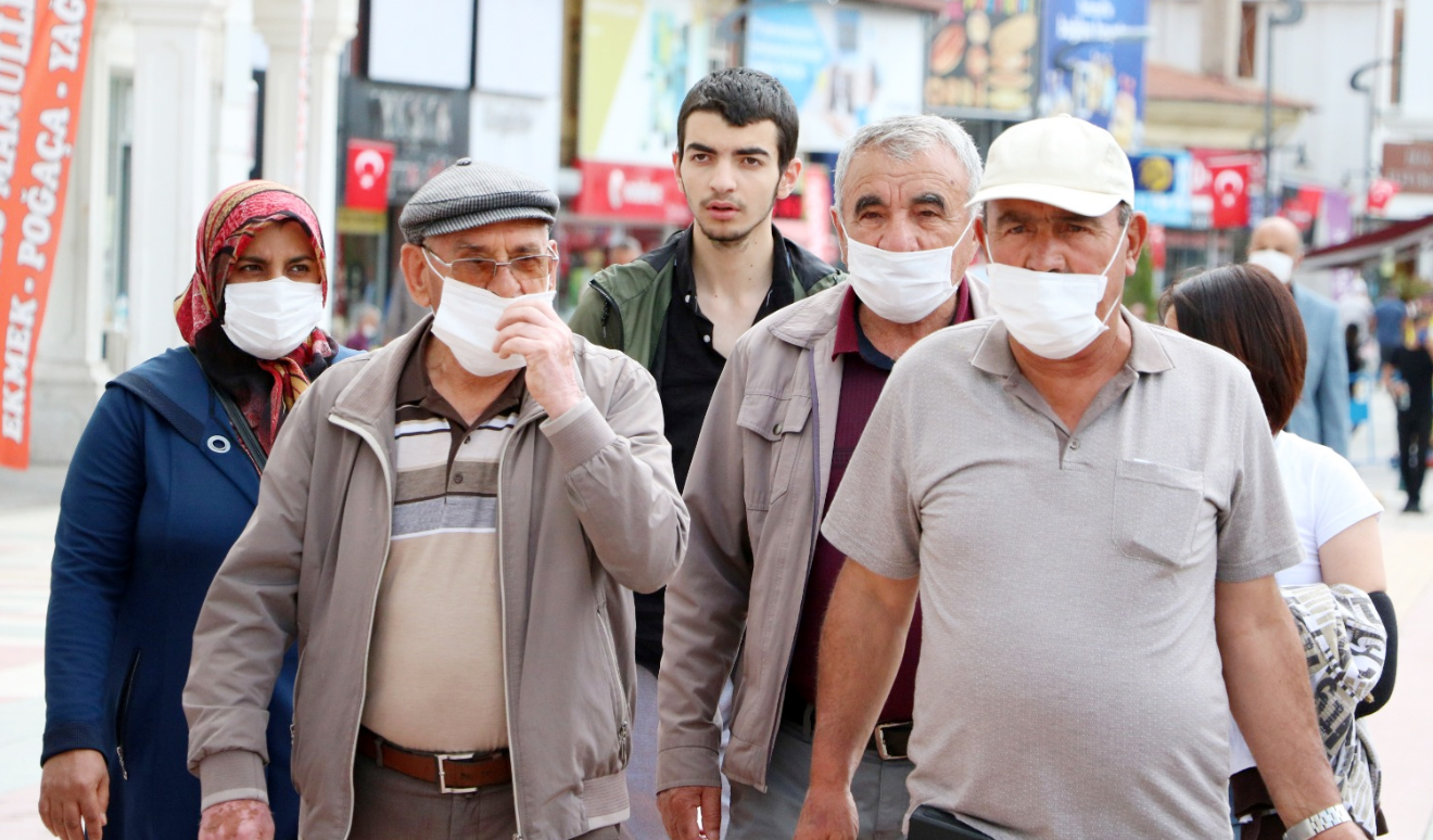 Yozgat’ta maske takma zorunluluğuna uymayan vatandaşlar, kendilerini görüntüleyen basın mensuplarını görünce maskelerini taktı.