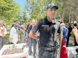Şehitlik ziyareti sırasında şehir kabirleri arasında bekleyen Yozgat İl Emniyet Müdürlüğü’nde görevli Polis memurlarından birisi gözyaşlarını tutamadı. Şehitlik ziyareti sırasında kabirlere karanfil bırakılırken, bir polis memurunun ise gözleri doldu. İhsan Çelikkaya