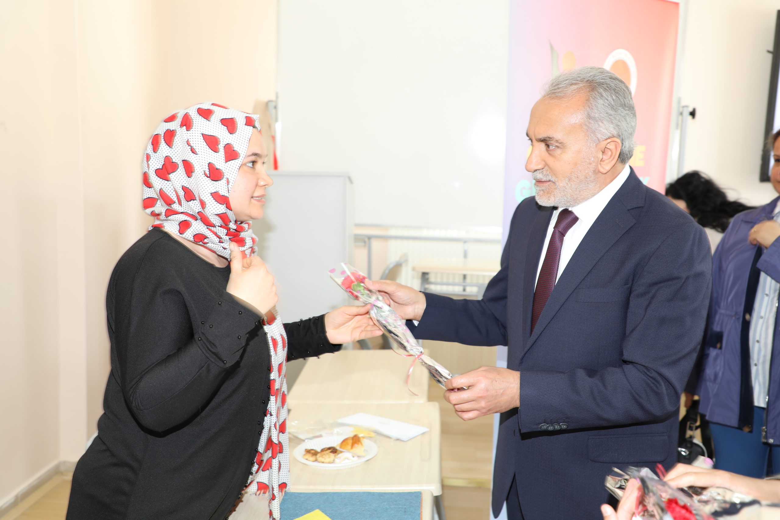 Rektör Prof. Dr. Ahmet Karadağ, eğitime katılan annelerle bir süre sohbet ederek, anneler günü dolayısıyla kendilerine karanfil takdim etti. Haber Merkezi