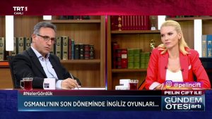 Büyük Oyun İngiltere Başkanı Gladstone’un Osmanlı’yı Yıkma Planı, Sınırları Çizen Kadın İngiliz Casus Gertrude Bell, Tarihçi Geçmişi Kurgulamak: Kuram-Tasarım-İnşa kitaplarının da yazarı olan Prof. Dr. Taha Niyazi Karaca, Pelin Çift’in sorduğu “Osmanlı yardımı İngiltere’yi işgal edilmekten nasıl kurtardı? Osmanlı’nın son dönemlerinde İngiliz oyunları ile neler yaşandı? İngiliz kraliyet ailesi ve Osmanlı Hanedanı’nın ilişkileri nasıldı? Kraliçe’nin cenazesinde uygulanan bin yıllık monarşi gelenekleri ve sembolleri neler?” sorularını cevaplandırdı.