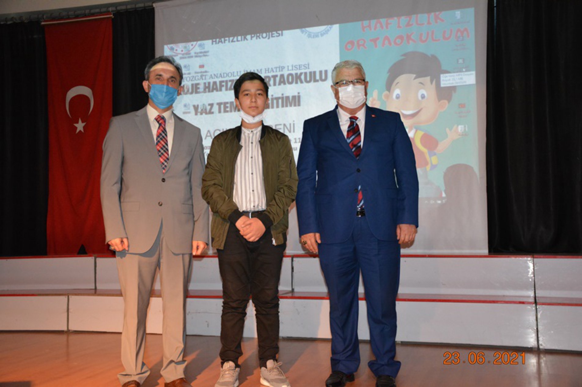 İl Milli Eğitim Müdürü Yusuf Yazıcı, İl Müftüsü Ali Gülden ve Okul Müdürü Ramazan Güneşer’in konuşmalarının ardından Yozgat hafızlık proje okulunun ilk hafızı olan öğrencisi Hafız Bilal Yasir Karakış ödüllendirildi. (Cemil Mermertaş)